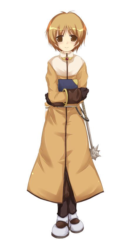 1boy acolyte_(ragnarok_online) armored_boots blonde_hair blush book boots brown_eyes brown_gloves brown_pants cassock crossed_arms full_body gloves holding holding_book large_variant_set long_sleeves looking_at_viewer mace male_focus official_art pants ragnarok:_guild_masters ragnarok_online short_hair simple_background solo spiked_mace spikes standing transparent_background variant_set weapon yumesato_makura
