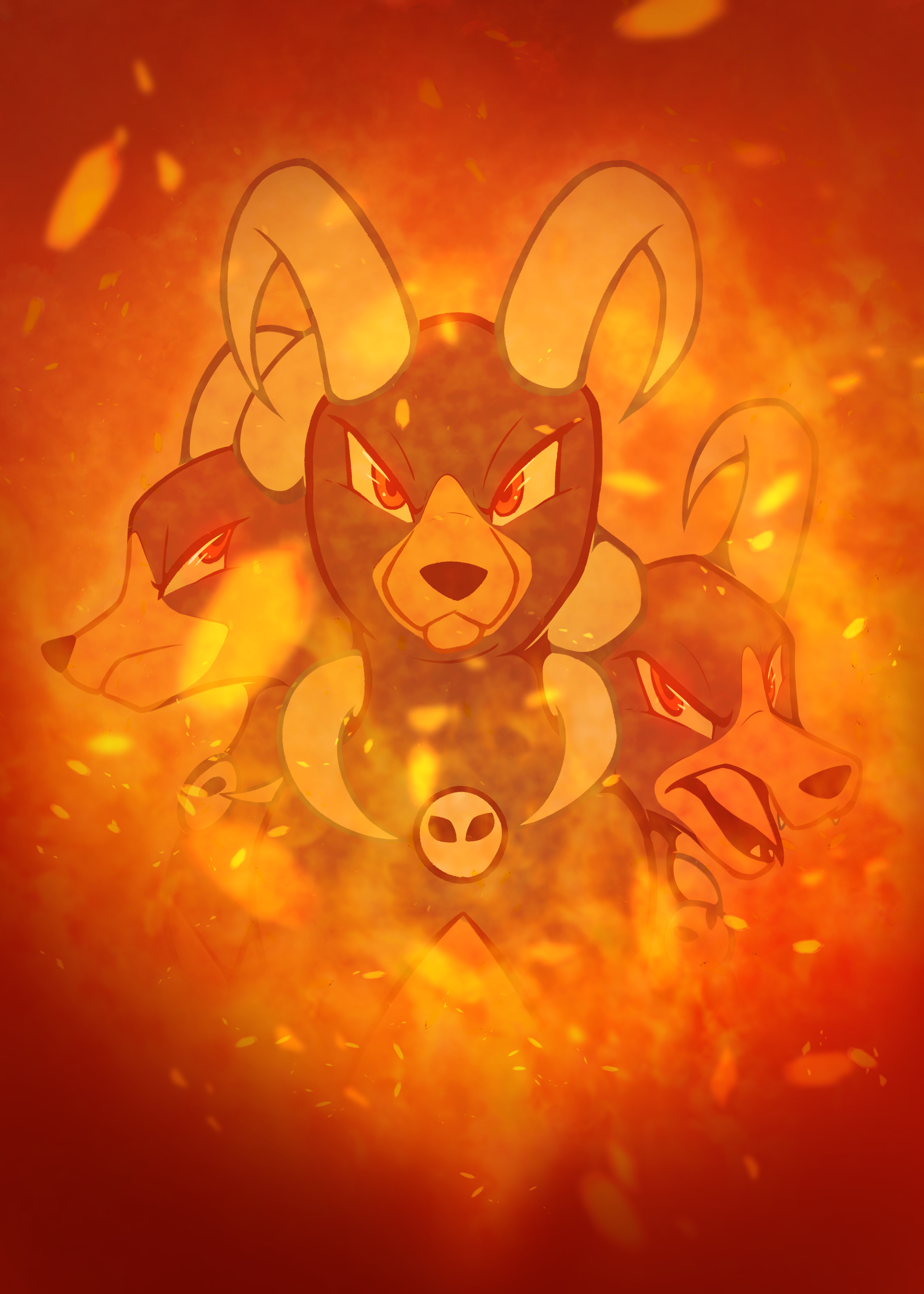 absurdres dog fire gen_2_pokemon highres horns houndoom looking_at_viewer nintendo no_humans open_mouth ozmandiasthecardguy pokemon pokemon_(creature) red_eyes