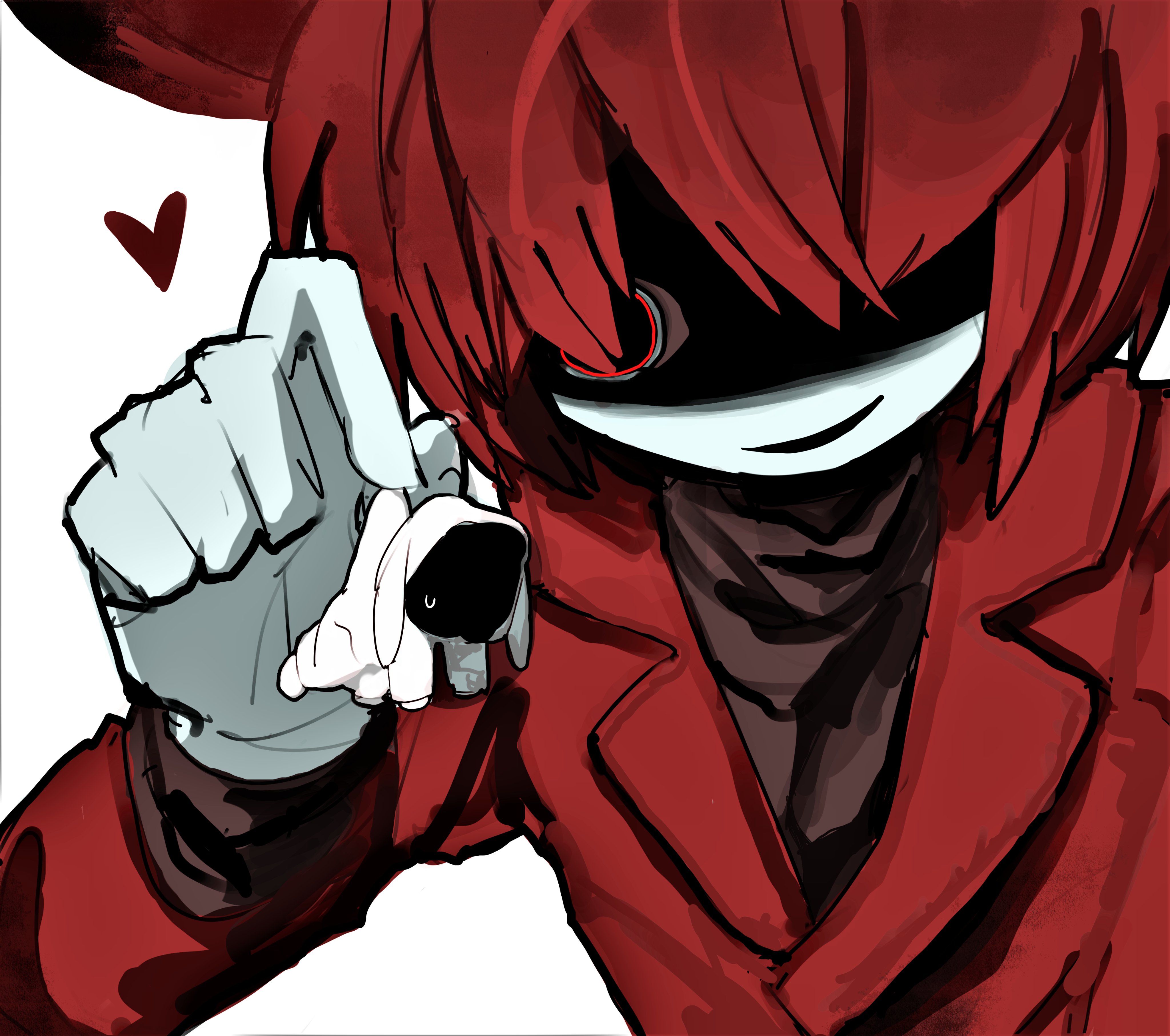 1boy 1girl absurdres animal_ears carrying carrying_person coat dilated_pupils fox_boy fox_ears heart adashino_adami highres homicipher kemonomimi_mode looking_at_another mini_person minigirl mr._scarletella rabbit_ears rabbit_girl raincoat red_coat red_eyes red_hair shaded_face short_hair simple_background t1669760880301 upper_body white_background white_raincoat
