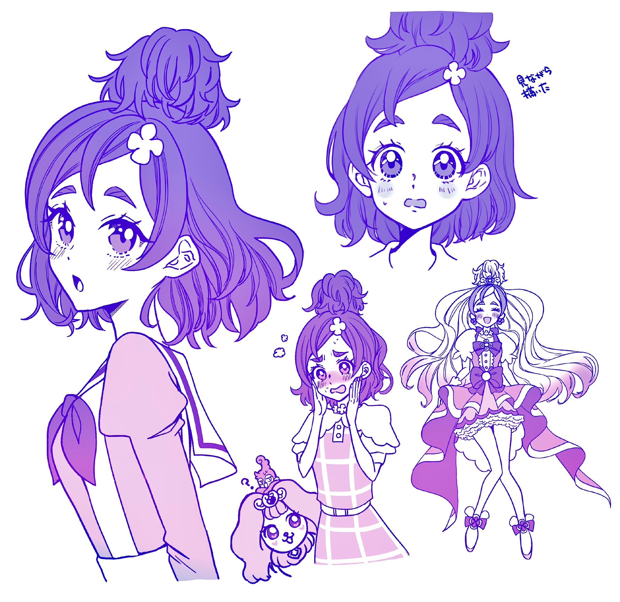 1girl belt blush boots bow bowtie brooch choker closed_eyes cure_flora dog dress earrings fairy flower flower_brooch flower_choker flower_earrings gloves go!_princess_precure gradient_hair hair_bun hair_flower hair_ornament haruno_haruka high_heel_boots high_heels highres jewelry long_hair long_sleeves magical_girl medium_hair monochrome multicolored_hair neckerchief noble_academy_school_uniform open_mouth petticoat pre_greenblue precure puff_(precure) puffy_short_sleeves puffy_sleeves school_uniform shirt short_sleeves single_hair_bun skirt smile solo suspender_skirt suspenders very_long_hair
