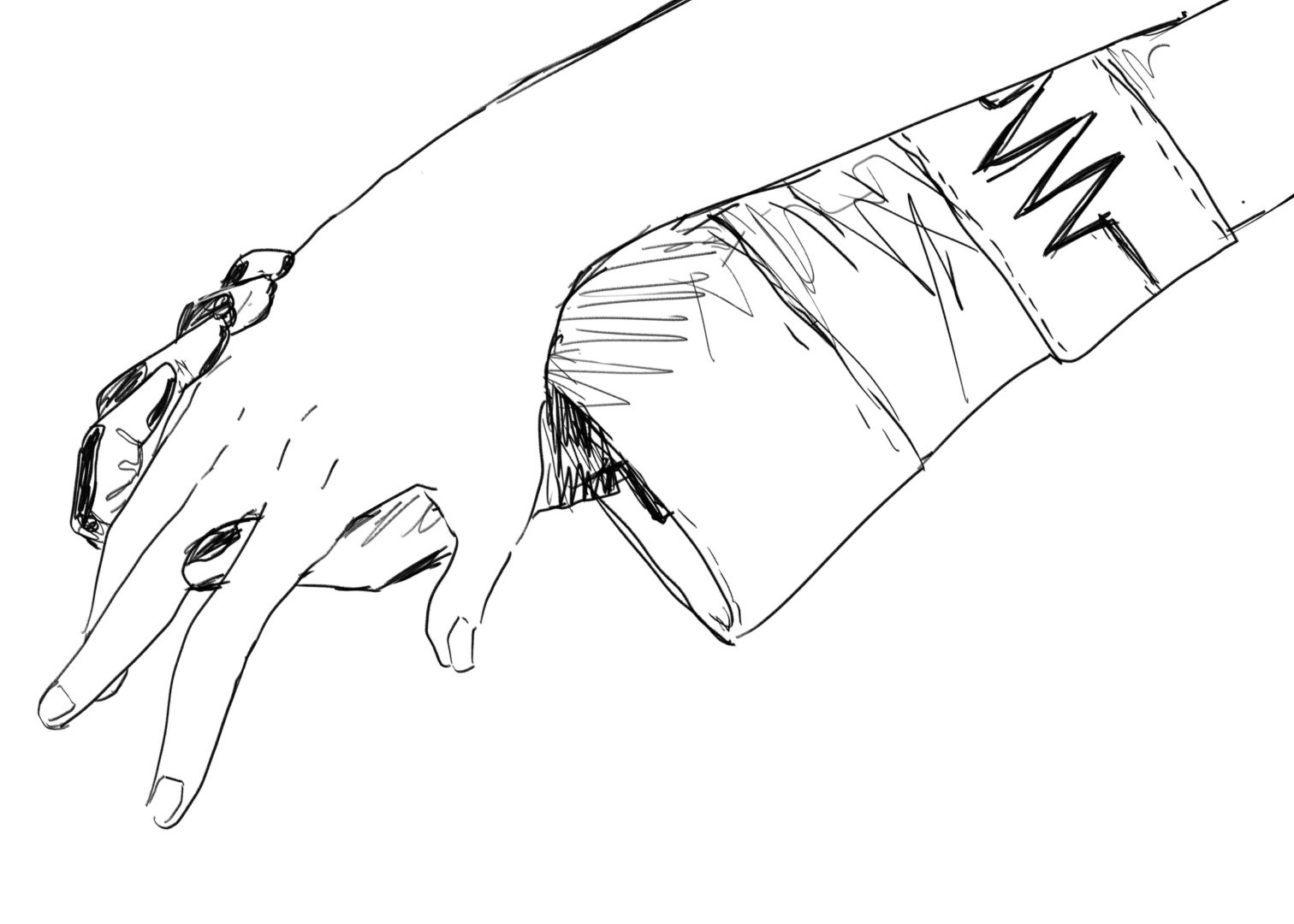 1girl 1other a.i._voice adachi_rei ambiguous_gender close-up gloves greyscale hand_focus holding_hands interlocked_fingers long_sleeves monochrome out_of_frame outstretched_arm sanotsuki_(mochi0101_831) simple_background utau