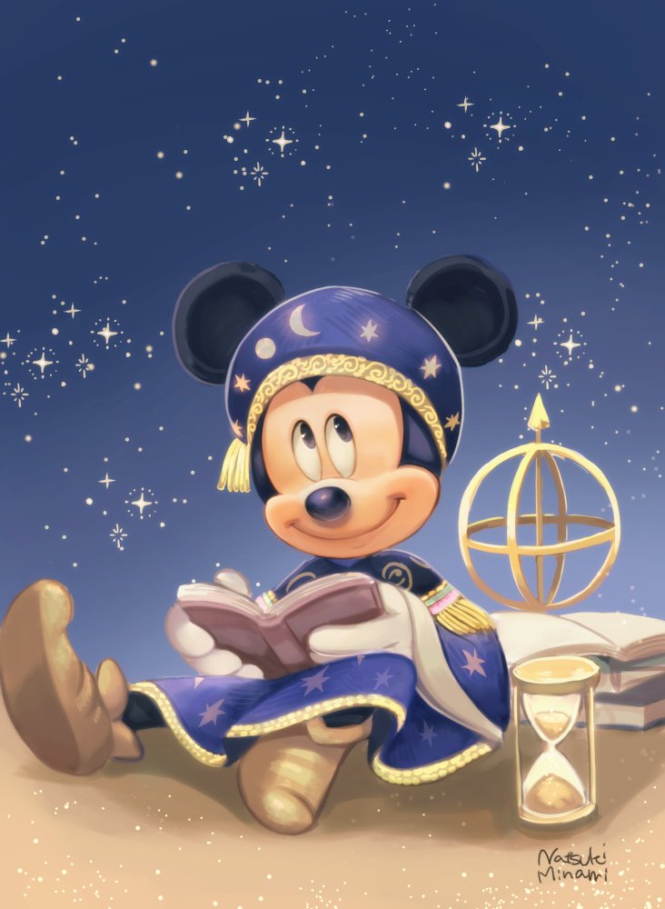 1boy alternate_costume animal_ears book closed_mouth disney floor gloves hat hourglass looking_at_viewer mickey_mouse mickey_mouse_&_friends mouse_boy mouse_ears natsuki_nori nightcap shirt sitting sleepwear smile solo