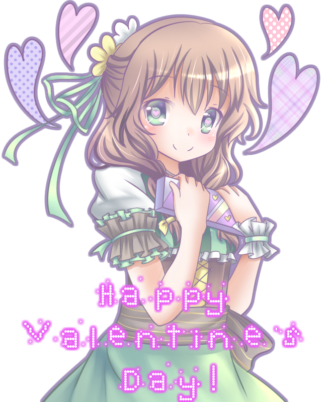 1girl aishin arcadea braid brown_hair dress emi_(arcadea) green_dress green_eyes happy_valentine heart low_twin_braids medium_hair official_art puffy_short_sleeves puffy_sleeves short_sleeves solo transparent_background twin_braids