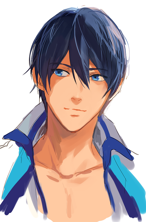 1boy blue_eyes blue_hair blue_jacket closed_mouth collarbone free! jacket looking_to_the_side male_focus nanase_haruka_(free!) okii_(oh_ki_ik) open_clothes open_jacket portrait simple_background solo white_background