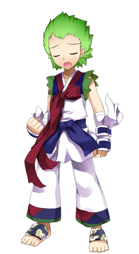 1boy arm_wrap barefoot blue_bow blue_sash bow bowtie clenched_hand closed_eyes dougi full_body green_hair large_variant_set male_focus official_art open_mouth pants ragnarok:_guild_masters ragnarok_online raised_eyebrows red_bow red_bowtie sash shiratama_dango shirt short_hair simple_background sleeveless sleeveless_shirt solo standing taekwon_(ragnarok_online) transparent_background variant_set white_pants white_shirt