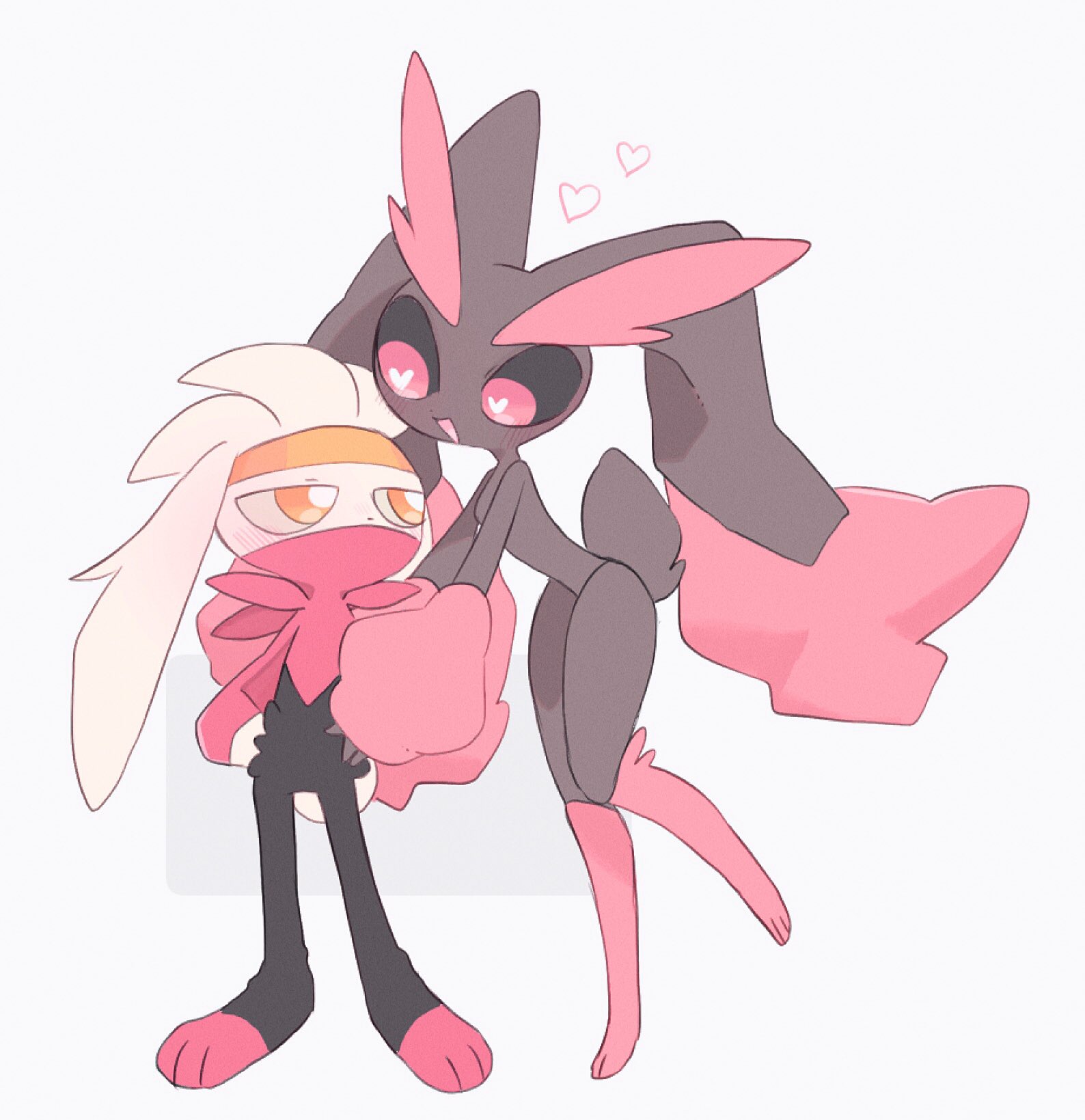 1boy 1girl alternate_color animal_ears animal_hands animal_nose black_sclera body_fur bright_pupils brown_fur colored_sclera full_body furry furry_female furry_male gen_4_pokemon gen_8_pokemon heart hetero highres looking_at_another lopunny masayo_(skip) nintendo open_mouth pink_eyes pink_fur pokemon pokemon_(creature) rabbit_ears rabbit_girl rabbit_tail raboot shiny_pokemon simple_background smile standing tail two-tone_fur white_background white_fur white_pupils yellow_eyes