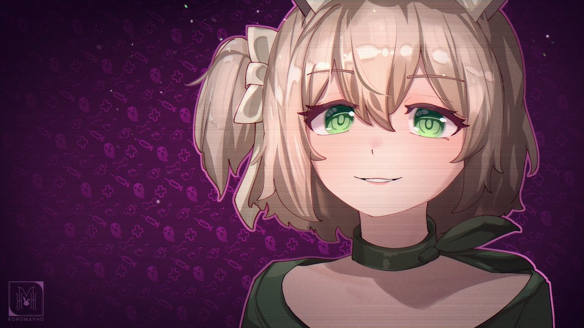 1girl animal_ears brown_hair cosplay green_eyes hat indie_virtual_youtuber koromay_ho medium_hair miside mita_(miside)_(cosplay) nimi_nightmare nurse_cap one_side_up open_mouth parody smile tapir_girl virtual_youtuber