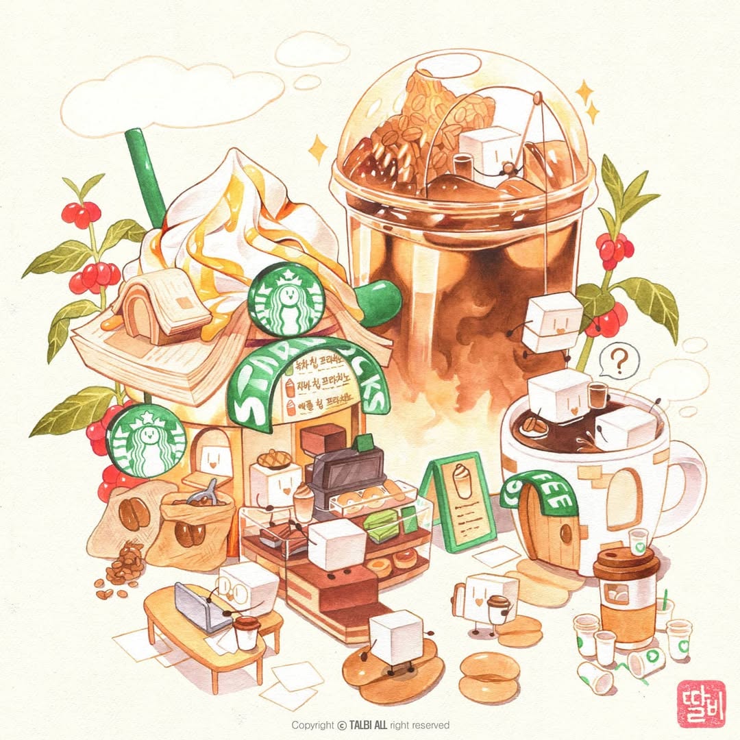 ? artist_name bagel beret berry black_eyes brown_hat cafe cash_register cloud coffee coffee_beans computer copyright_notice cup display disposable_cup drinking_straw fishing_rod food_focus glasses hat holding holding_fishing_rod laptop menu_board no_humans on_stool open_mouth original paper plaid_hat round_eyewear sitting smile solid_oval_eyes spoken_question_mark stairs starbucks stool sugar_cube table talbi typing watermark white_background
