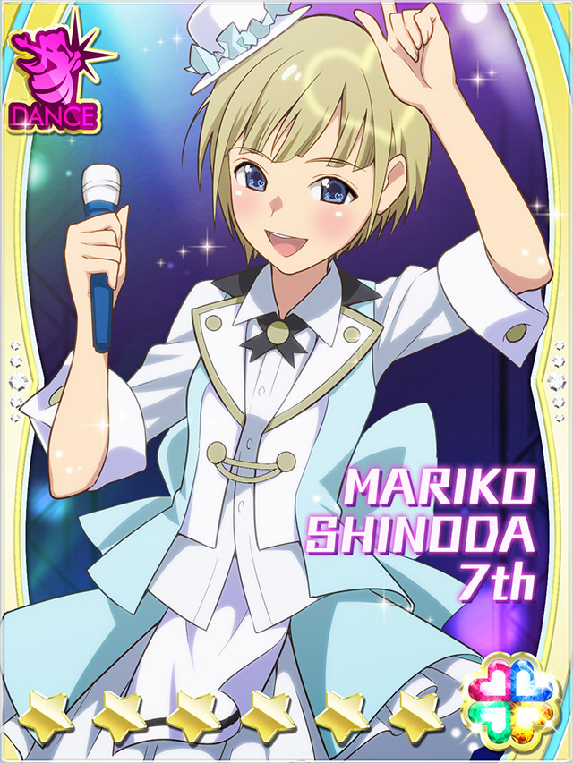 1girl :d akb0048 arm_up blue_eyes card_(medium) character_name concert cowboy_shot green_hair heart holding holding_microphone index_finger_raised jacket katagiri_tsubasa looking_at_viewer microphone non-web_source official_art open_mouth shirt short_hair skirt three-quarter_sleeves smile solo sparkle stage_lights standing star_(symbol) teeth upper_teeth_only white_shirt