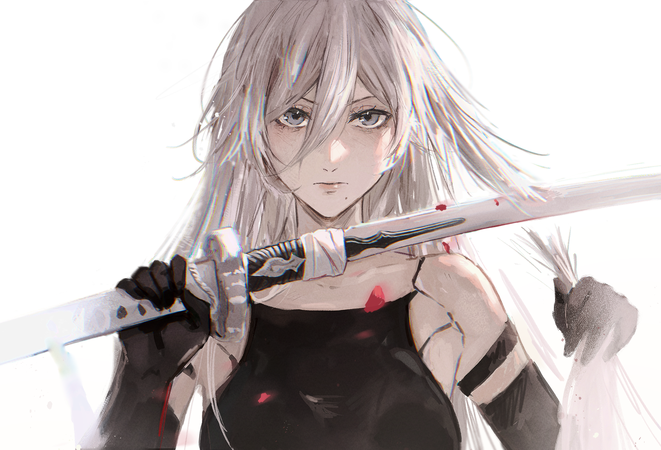 &{ID:11350287 CreatedAt:Fri Jan 24 14:15:24 -0600 2025 Score:8 Width:2200 Height:1500 MD5:5adbaa501ff83f45df7c438571632d3b Directory:5a/db Image:5adbaa501ff83f45df7c438571632d3b.png Rating:general Source:https://www.pixiv.net/artworks/126542439 Change:1737749725 Owner:danbooru CreatorID:6498 ParentID:0 Sample:1 PreviewHeight:238 PreviewWidth:350 Tags:1girl a2_(nier:automata) android black_shirt breasts chromatic_aberration closed_mouth commentary cutting_hair cutting_own_hair hair_between_eyes highres holding holding_sword holding_weapon katana looking_at_viewer mechanical_hands mole mole_under_mouth nier:automata nier_(series) portrait shirt simple_background small_breasts solo straight-on sword weapon white_background white_eyes white_hair yennyu Title: HasNotes:false HasComments:false FileURL:https://img2.gelbooru.com/images/5a/db/5adbaa501ff83f45df7c438571632d3b.png PreviewURL:https://gelbooru.com/thumbnails/5a/db/thumbnail_5adbaa501ff83f45df7c438571632d3b.jpg SampleURL:https://img2.gelbooru.com/samples/5a/db/sample_5adbaa501ff83f45df7c438571632d3b.jpg SampleHeight:580 SampleWidth:850 Status:active PostLocked:0 HasChildren:false IsVideo:false DisplayDate:24.01.2025 14:15}