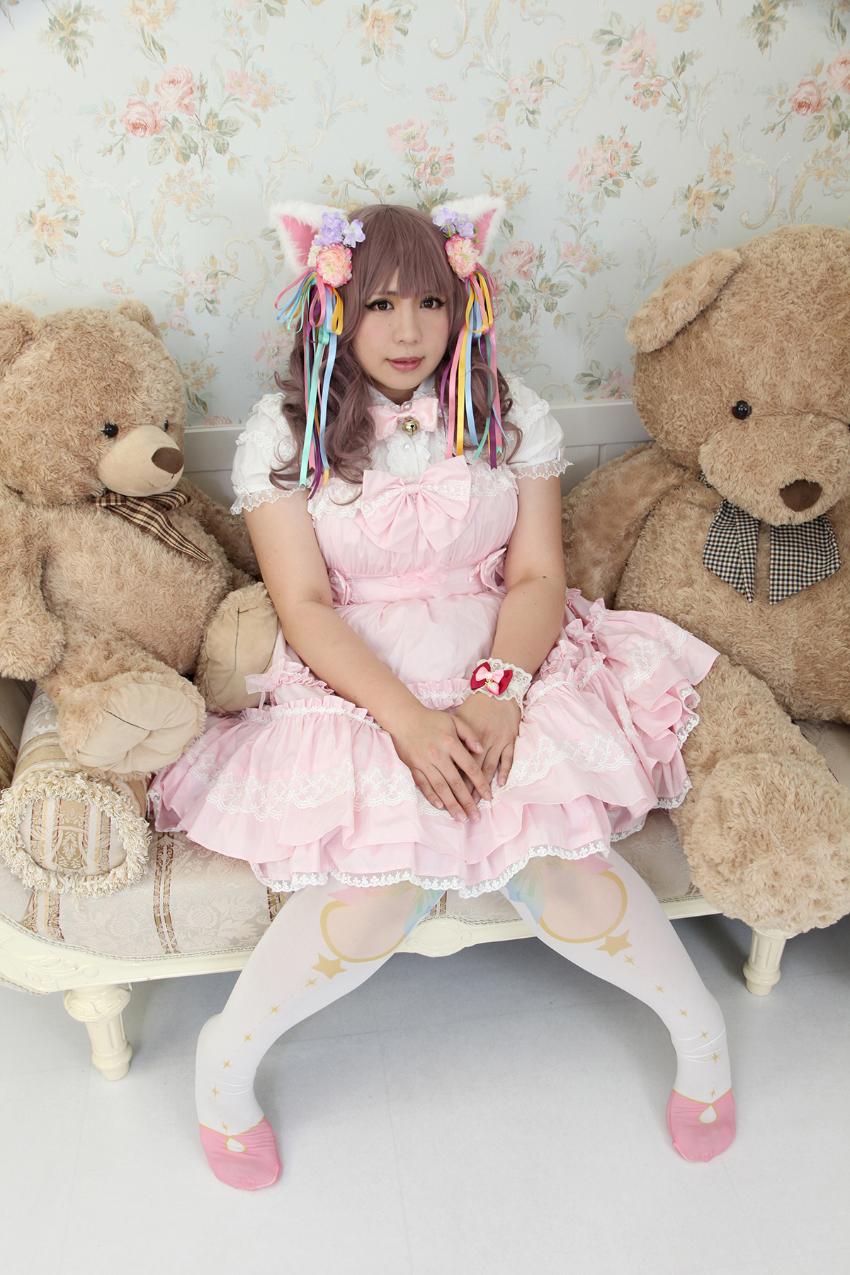 1girl animal_ears brown_hair cat_ears chouzuki_maryou east_asian highres lipstick makeup photo_(medium) plump solo