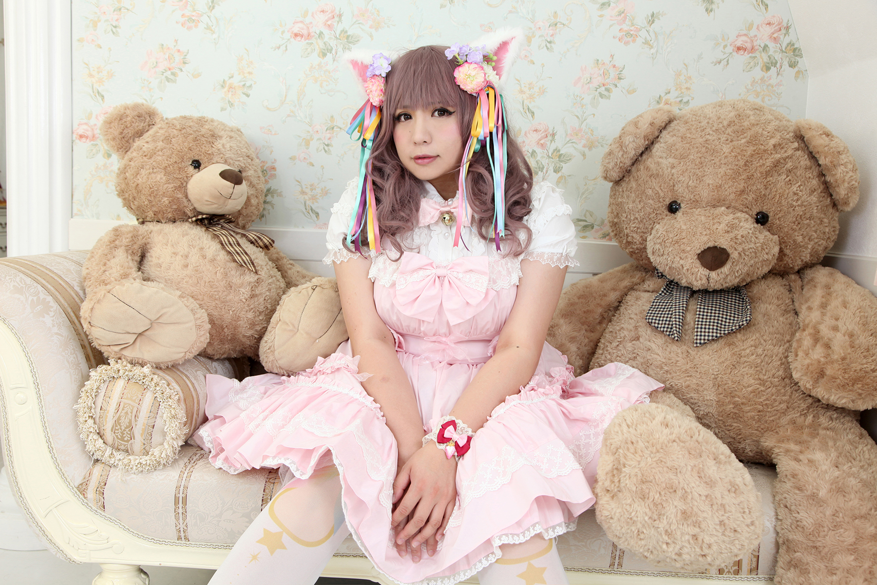 1girl animal_ears brown_hair cat_ears chouzuki_maryou east_asian highres lipstick makeup photo_(medium) plump solo