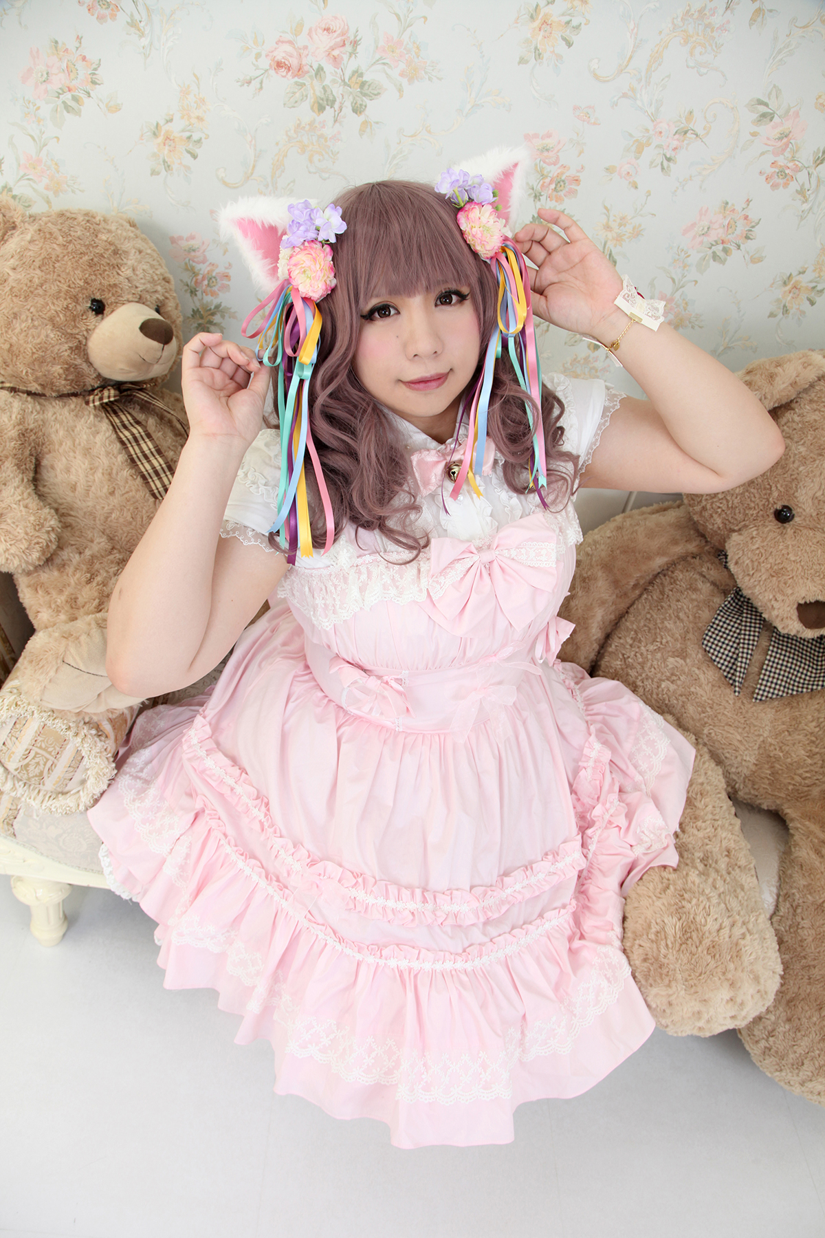 1girl animal_ears brown_hair cat_ears chouzuki_maryou east_asian highres lipstick makeup photo_(medium) plump solo