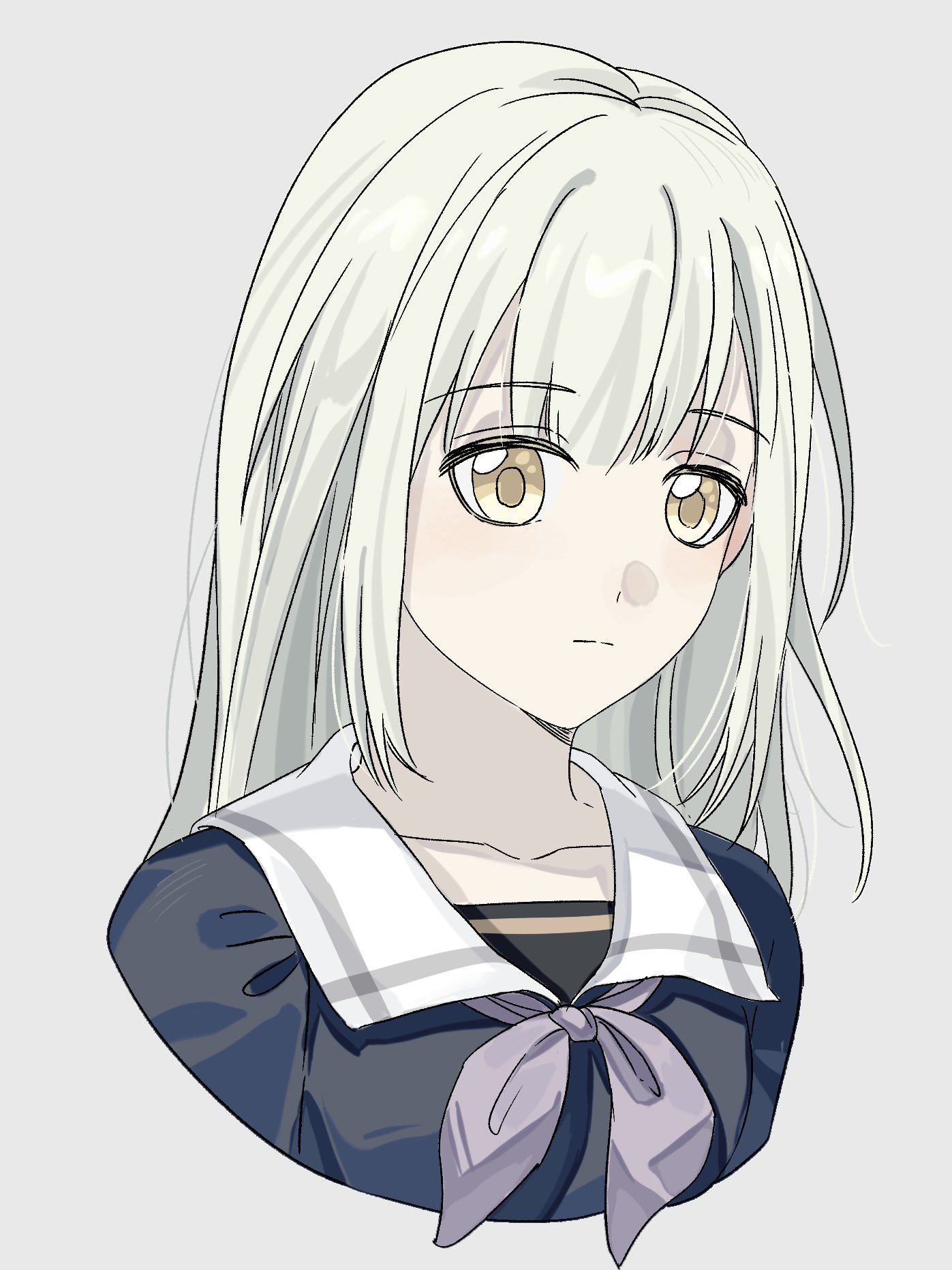 1girl bang_dream! bang_dream!_it's_mygo!!!!! blue_shirt collarbone commentary cropped_torso green_hair grey_background grey_neckerchief highres long_hair neckerchief nero_(nerolinsummer) school_uniform shirt simple_background solo untranslatable_commentary tsukinomori_school_uniform upper_body wakaba_mutsumi yellow_eyes