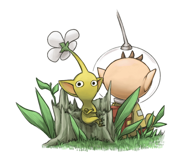1boy backpack bag black_eyes brown_hair colored_skin commentary_request crossed_arms flower full_body gloves grass helmet looking_at_viewer male_focus naru_(wish_field) nintendo no_mouth olimar patch pikmin_(creature) pikmin_(series) pointy_ears radio_antenna red_bag red_gloves short_hair simple_background sitting space_helmet spacesuit tree_stump very_short_hair white_background white_flower yellow_pikmin yellow_skin