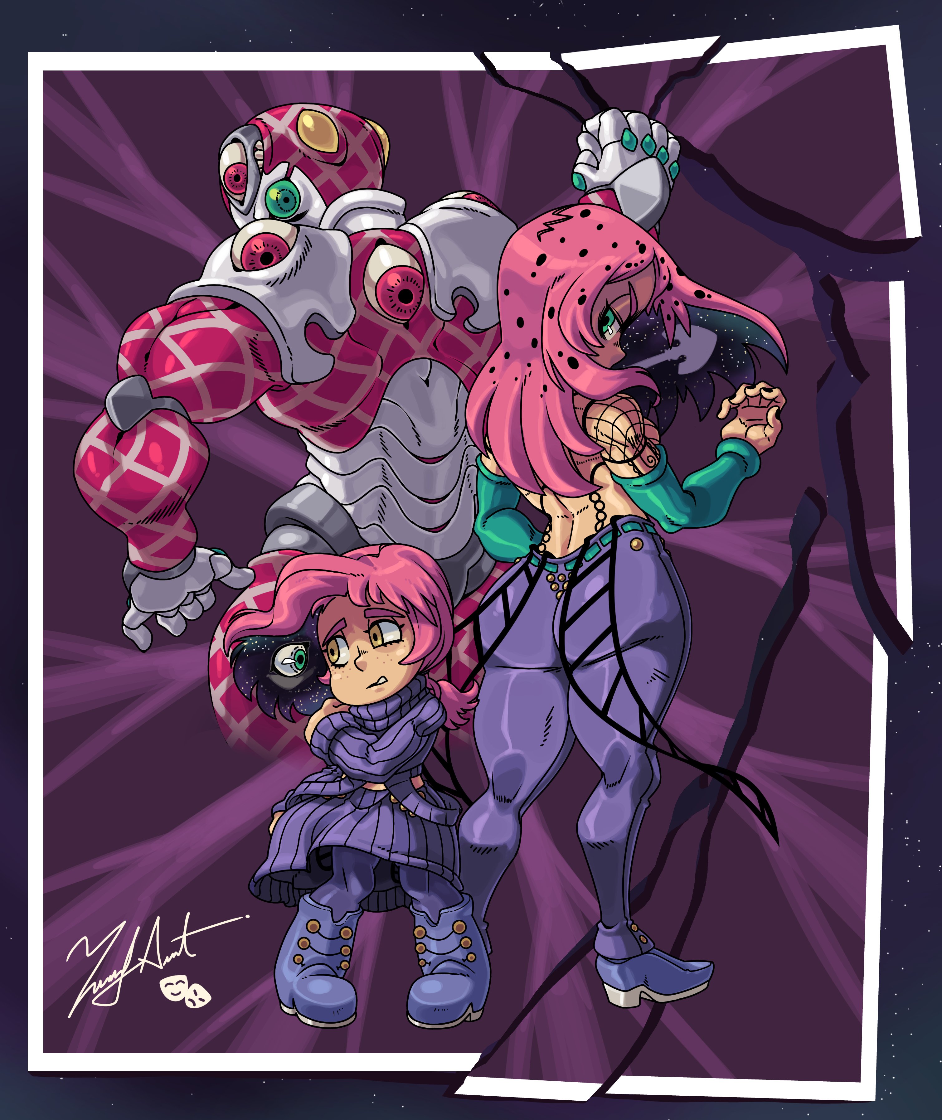 absurdres cosplay costume_switch diavolo highres hungern_(skullgirls) jojo_no_kimyou_na_bouken king_crimson_(stand) krieg_(skullgirls) parasoul_(skullgirls) skullgirls tagme umbrella_(skullgirls) vinegar_doppio zuesart