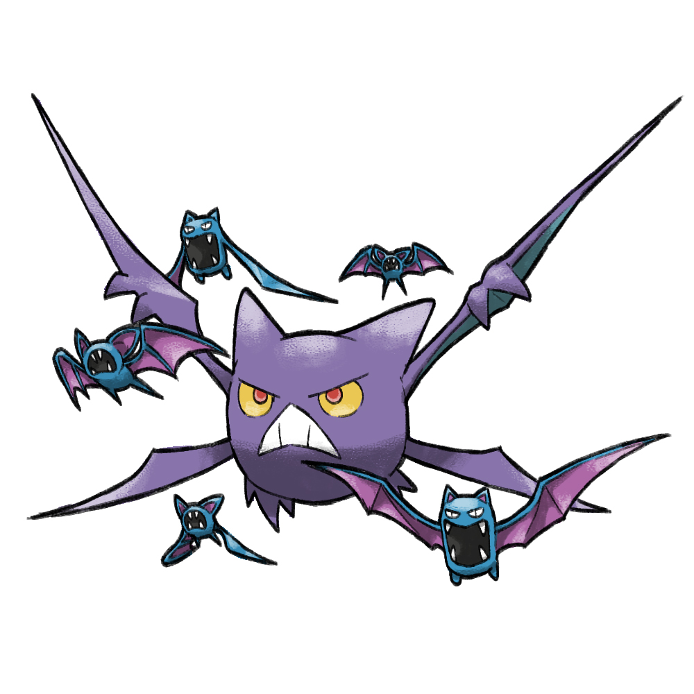 animal_focus blacknirrow colored_sclera crobat evolutionary_line fangs flying gen_1_pokemon gen_2_pokemon golbat nintendo no_eyes no_humans open_mouth pokemon pokemon_(creature) pokemon_focus red_eyes simple_background teeth white_background yellow_sclera zubat
