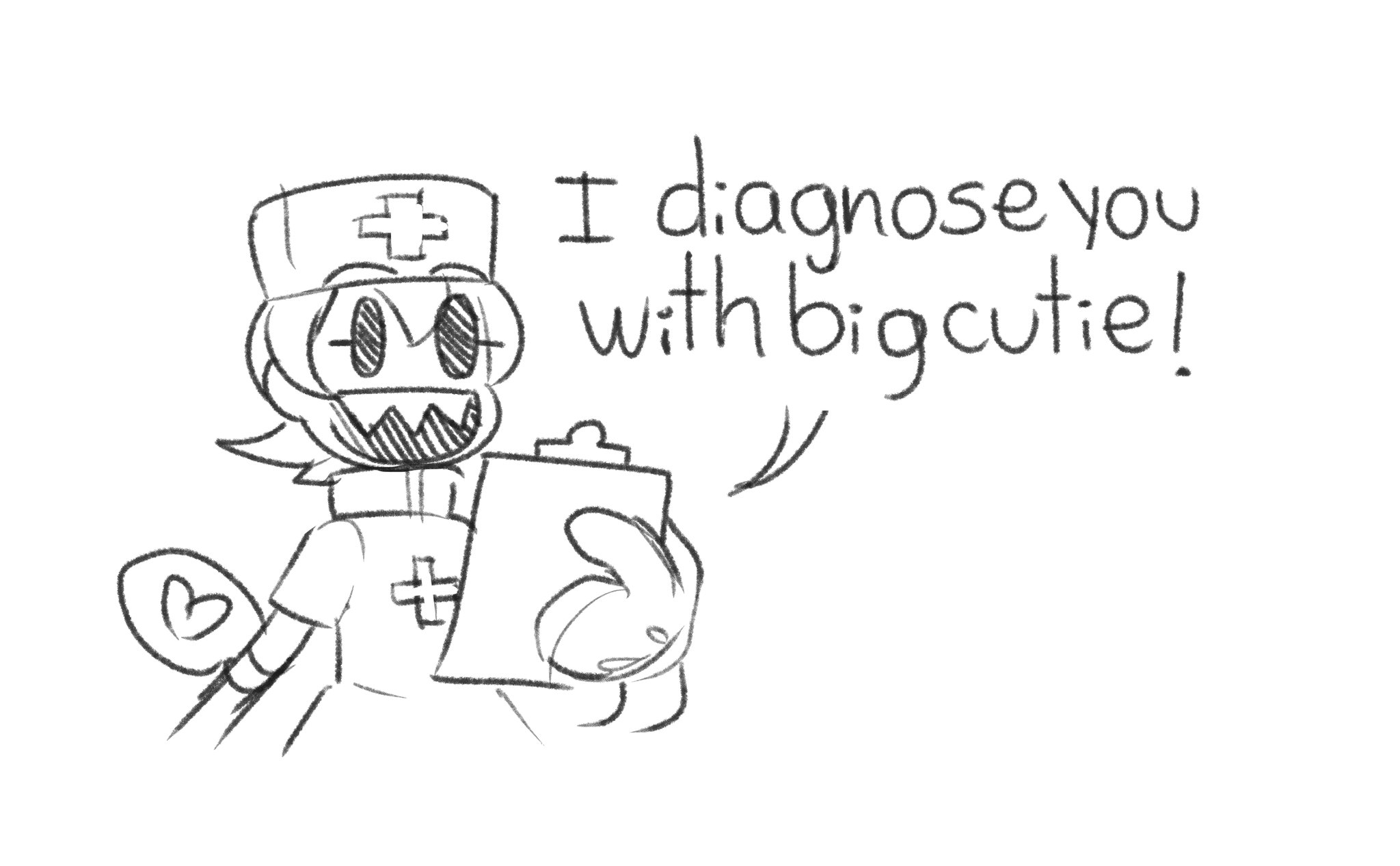 clipboard gloves hat heart heart-shaped_pupils highres latex latex_gloves nalfirstart nurse nurse_cap peacock_(skullgirls) skullgirls speech_bubble symbol-shaped_pupils