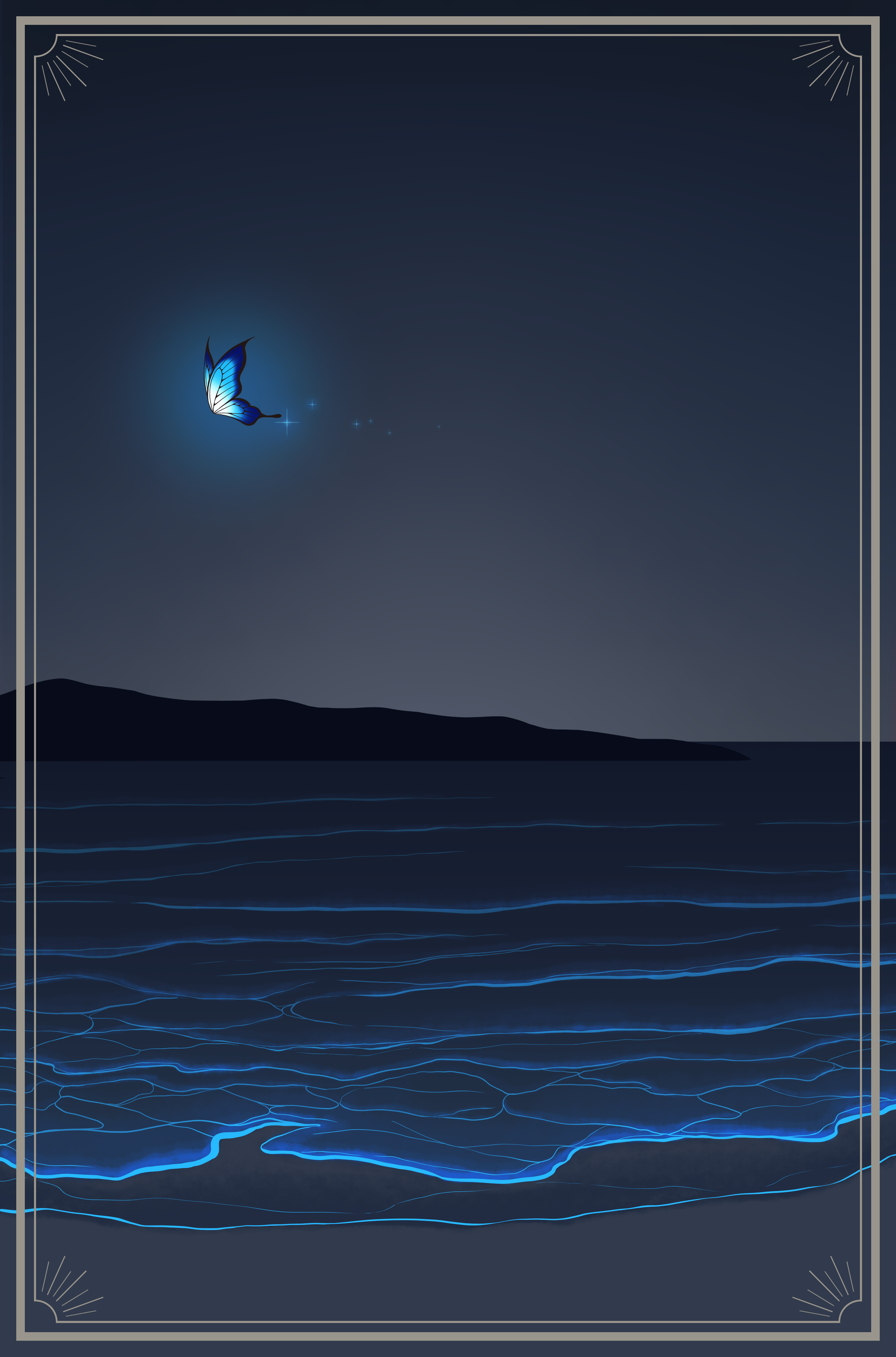 absurdres blue_butterfly border bug butterfly chinese_commentary commentary_request highres insect night no_humans outdoors shore sky water wuthering_waves xue_mei_(zyzm3884)