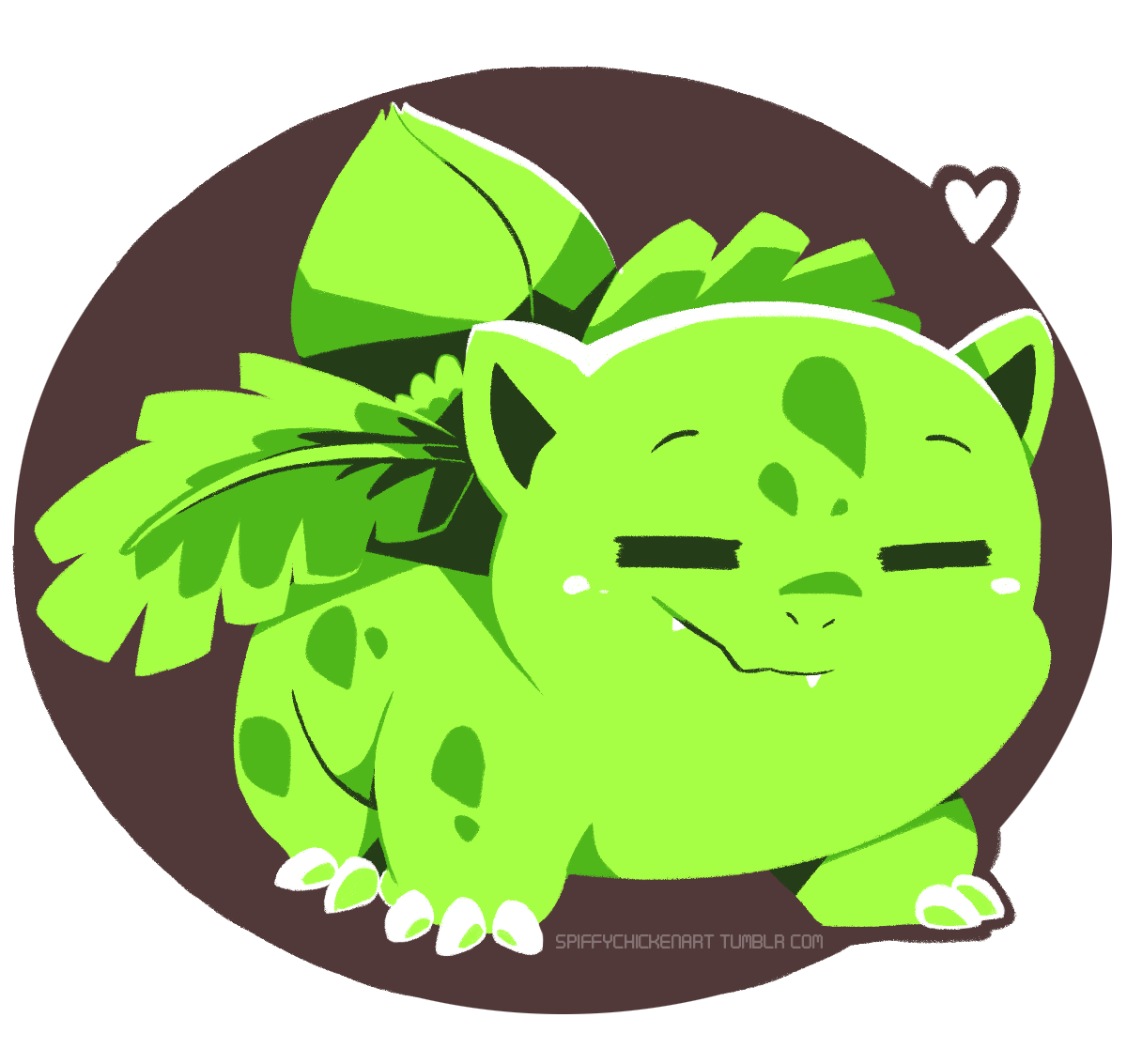 alpha_transparency animal_focus blush_stickers brown_background closed_eyes closed_mouth commentary english_commentary facing_viewer fangs full_body gen_1_pokemon happy heart ivysaur monochrome nintendo no_humans pokemon pokemon_(creature) solo spiffychicken transparent_background tumblr_username