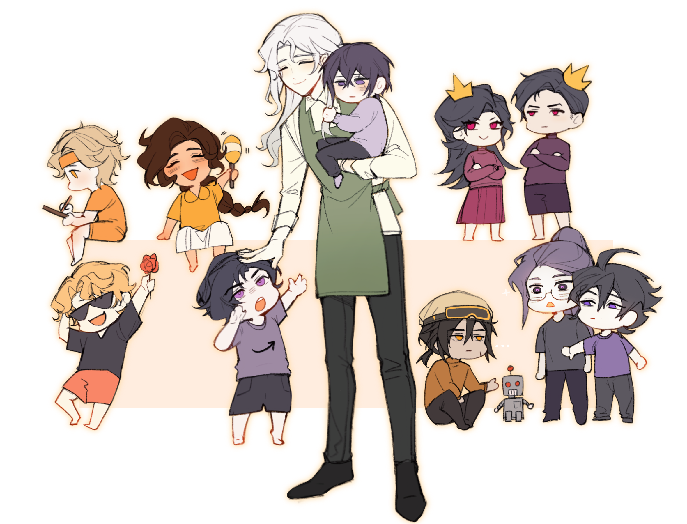 16personalities adventurer_(16personalities) advocate_(16personalities) ahoge architect_(16personalities) black_footwear black_pants black_shorts braid brown_hair child closed_eyes closed_mouth collared_shirt commander_(16personalities) crown debater_(16personalities) entertainer_(16personalities) entrepeneur_(16personalities) flower highres holding holding_flower holding_instrument holding_maracas instrument kindergarten_teacher logician_(16personalities) long_hair long_sleeves maracas open_mouth pants purple_eyes purple_shirt raymondisch red_flower red_rose rose shirt shoes shorts simple_background sleeve_cuffs smile t-shirt teacher very_long_hair virtuoso_(16personalities) white_background white_hair white_shirt
