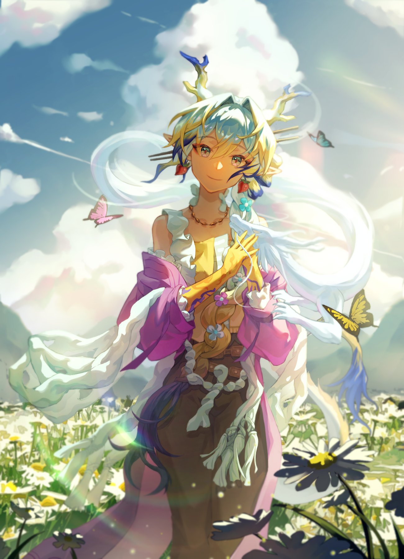 &{ID:11427384 CreatedAt:Sat Feb 08 10:45:08 -0600 2025 Score:0 Width:1300 Height:1800 MD5:8fb7a06faf9d8b8e8bdee94bf577dd0b Directory:8f/b7 Image:8fb7a06faf9d8b8e8bdee94bf577dd0b.jpg Rating:general Source:https://www.pixiv.net/artworks/126862864 Change:1739033109 Owner:danbooru CreatorID:6498 ParentID:0 Sample:1 PreviewHeight:350 PreviewWidth:252 Tags:1girl arknights arnocn blonde_hair brown_pants bug butterfly chinese_commentary closed_mouth cloud colored_extremities commentary_request day dragon_girl dragon_horns earrings frills hair_between_eyes highres horns insect jewelry lens_flare long_hair multicolored_hair necklace official_alternate_costume outdoors own_hands_together pants partial_commentary pink_butterfly pointy_ears purple_hair shawl shu_(arknights) shu_(spring_feast)_(arknights) smile solo standing sunlight tassel white_hair white_shawl yellow_butterfly Title: HasNotes:false HasComments:false FileURL:https://img2.gelbooru.com/images/8f/b7/8fb7a06faf9d8b8e8bdee94bf577dd0b.jpg PreviewURL:https://gelbooru.com/thumbnails/8f/b7/thumbnail_8fb7a06faf9d8b8e8bdee94bf577dd0b.jpg SampleURL:https://img2.gelbooru.com/samples/8f/b7/sample_8fb7a06faf9d8b8e8bdee94bf577dd0b.jpg SampleHeight:1177 SampleWidth:850 Status:active PostLocked:0 HasChildren:false IsVideo:false DisplayDate:08.02.2025 10:45}