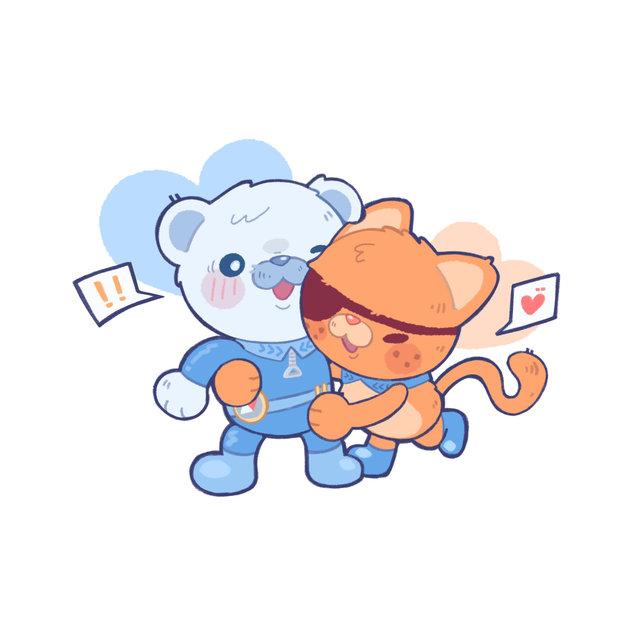 ! !! :3 :d animal_ears animal_hands animal_nose bear_boy bear_ears belt blue_belt blue_bodysuit blue_boots blush blush_stickers bodysuit boots captain_barnacles cat_boy cat_ears cat_tail commentary compass english_commentary eyepatch full_body furry furry_male guiluo29_bo heart highres hug kwazii_(the_octonauts) looking_at_another male_focus missing_headwear one_eye_closed open_mouth orange_fur orange_hair simple_background smile spoken_heart standing tail the_octonauts white_background white_fur white_hair yaoi zipper
