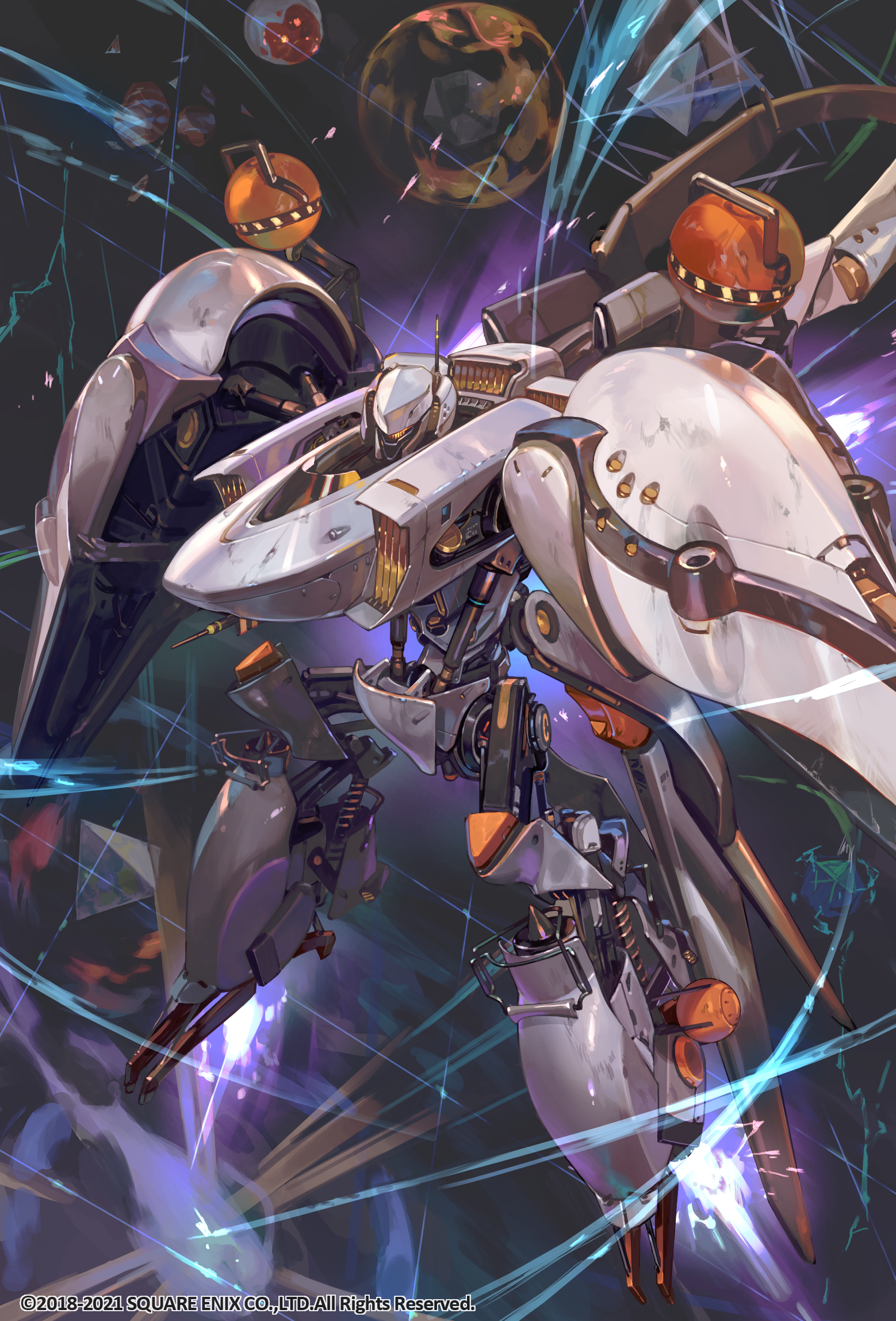 commentary_request copyright_notice full_body highres mecha mecha_focus no_humans official_art robot romancing_saga_re;universe saga saga_frontier science_fiction so-taro solo space t260g_(saga)