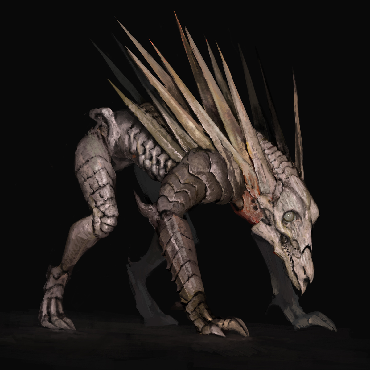 all_fours armor back_spikes black_background claws creature creature_focus fantasy full_body highres looking_to_the_side no_humans oleg_bulakh original
