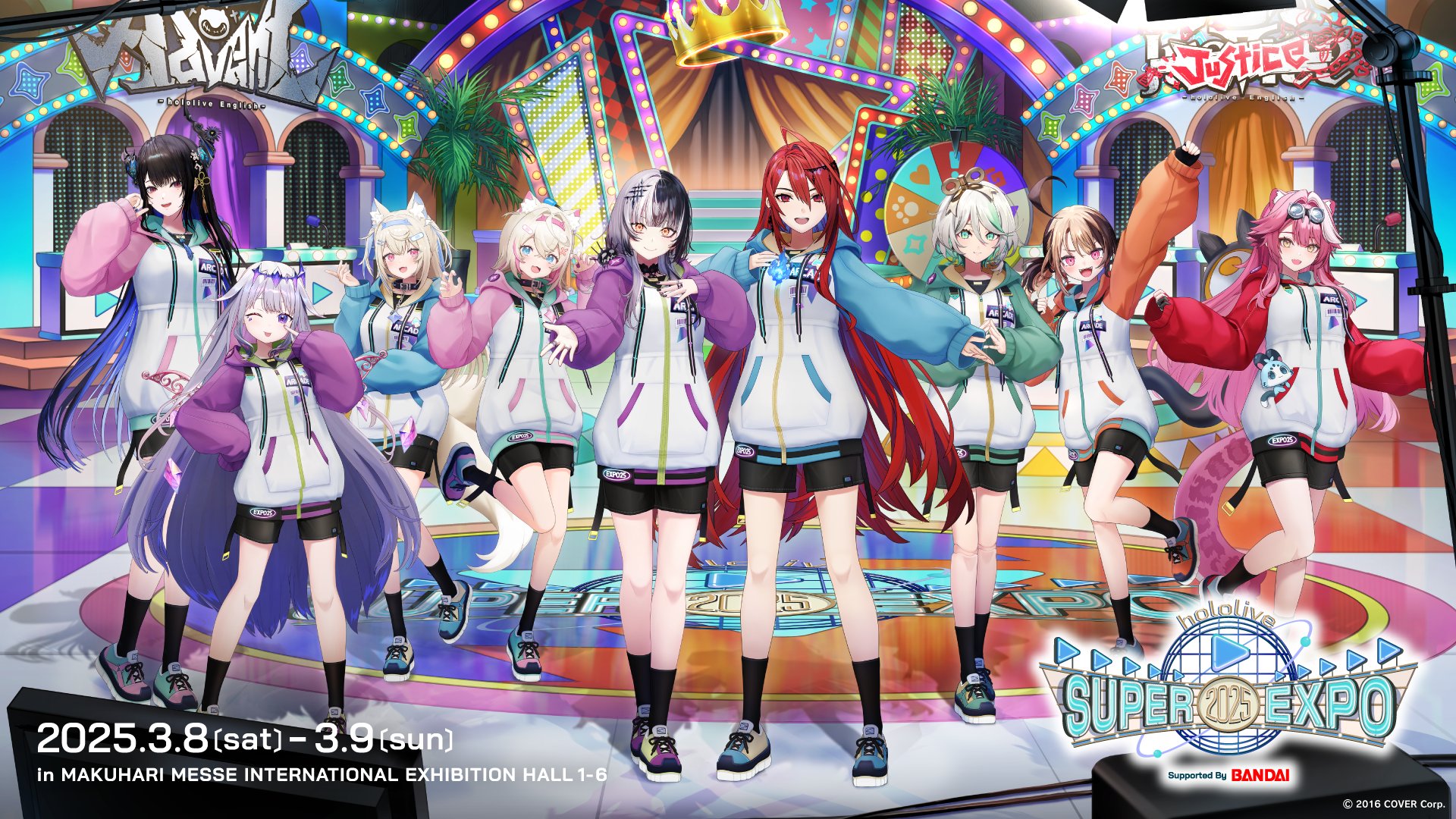 6+girls bandai breasts cecilia_immergreen chattino_(raora_panthera) copyright_name elizabeth_rose_bloodflame fuwawa_abyssgard gigi_murin highres holoadvent holojustice hololive hololive_english koseki_bijou long_hair looking_at_viewer mococo_abyssgard multicolored_hair multiple_girls nerissa_ravencroft official_alternate_costume official_art open_mouth raora_panthera shiori_novella smile virtual_youtuber