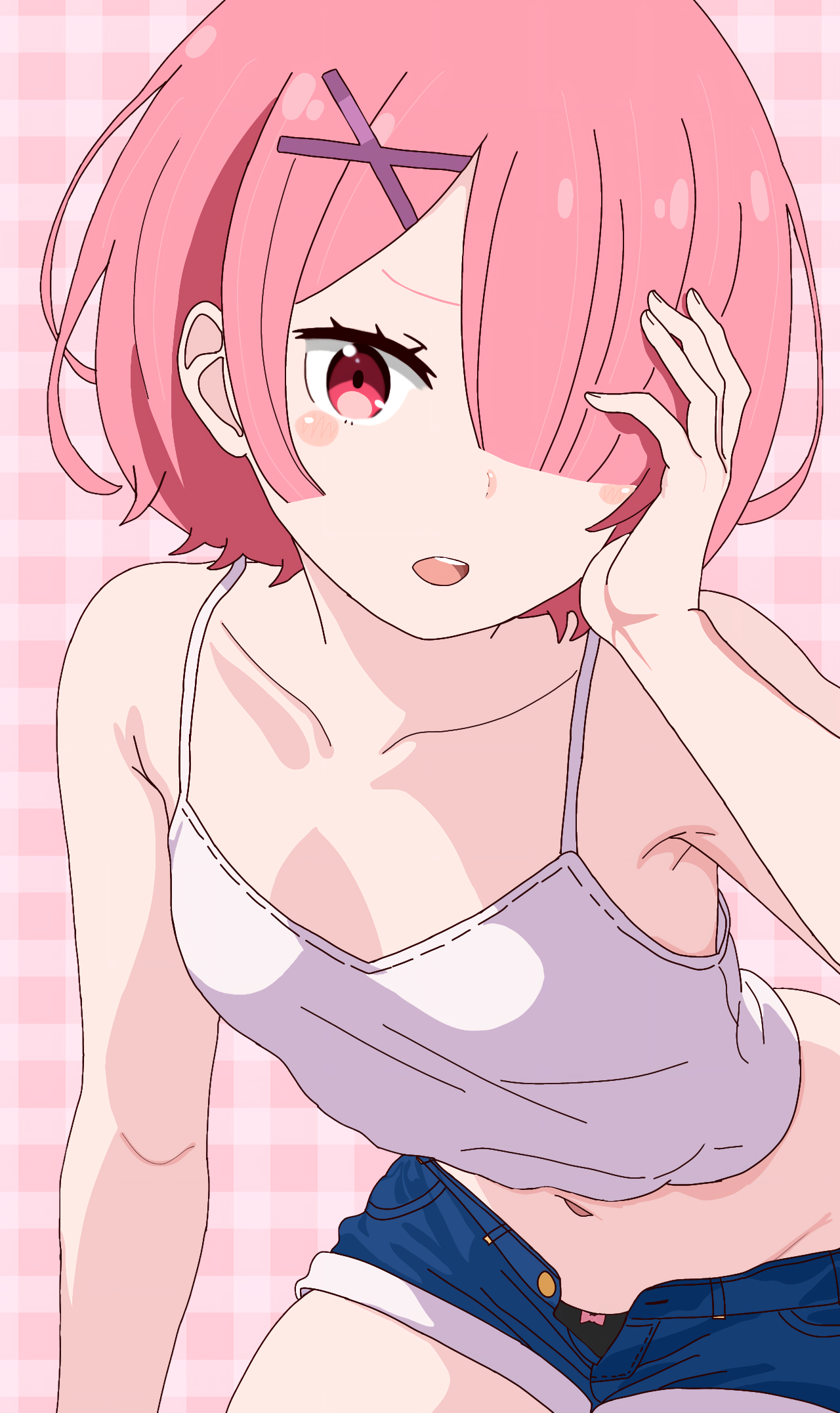 1girl breasts highres looking_at_viewer open_mouth pink_eyes pink_hair ram_(re:zero) re:zero_kara_hajimeru_isekai_seikatsu remnia short_hair small_breasts solo
