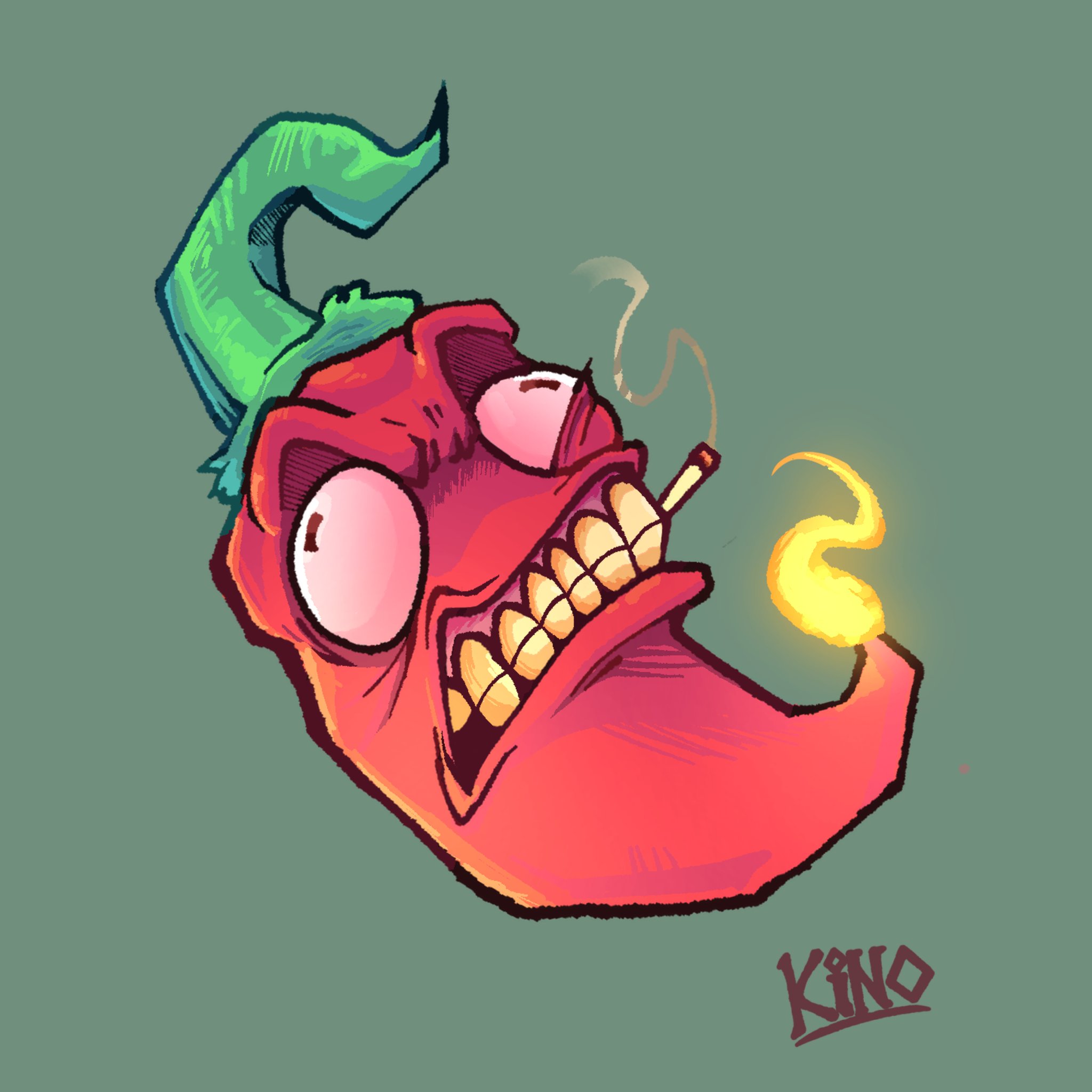 cigarette green_background highres jalapeno_(plants_vs._zombies) kinomotoroka no_humans plants_vs._zombies signature simple_background smoking solo