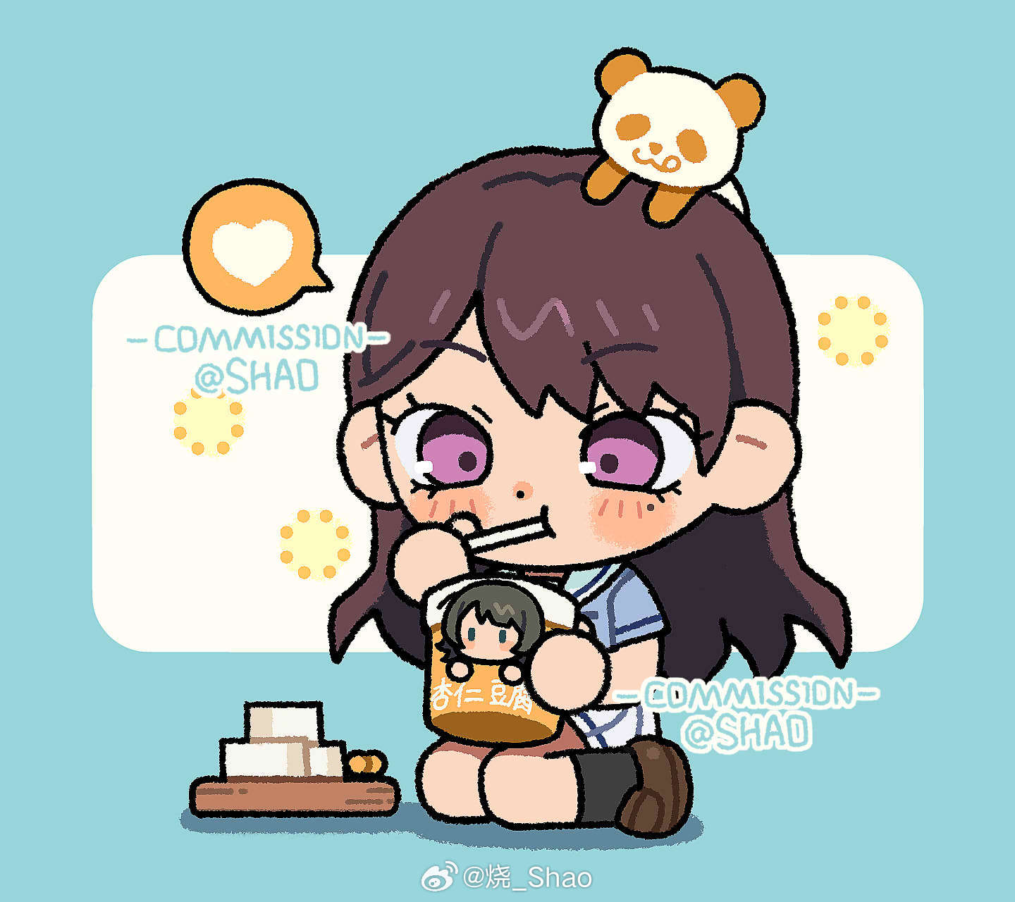 1girl bang_dream! bang_dream!_it's_mygo!!!!! black_socks blue_shirt blush brown_hair brown_shoes chinese_commentary commentary_request commission eating hanasakigawa_school_uniform heart highres long_hair mole mole_under_eye panda purple_eyes sailor_collar school_uniform serafuku shao_(shaorouhong) shirt shoes short_sleeves sitting skirt socks solo spoken_heart watermark weibo_watermark white_sailor_collar white_skirt yahata_umiri