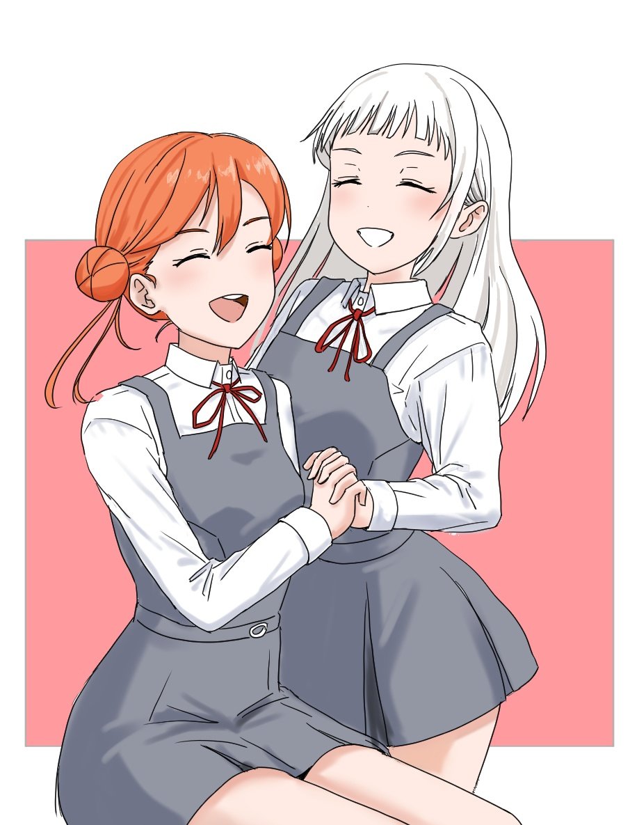 2girls arashi_chisato long_hair love_live! love_live!_superstar!! multiple_girls nonaka_kokoro shibuya_kanon white_hair