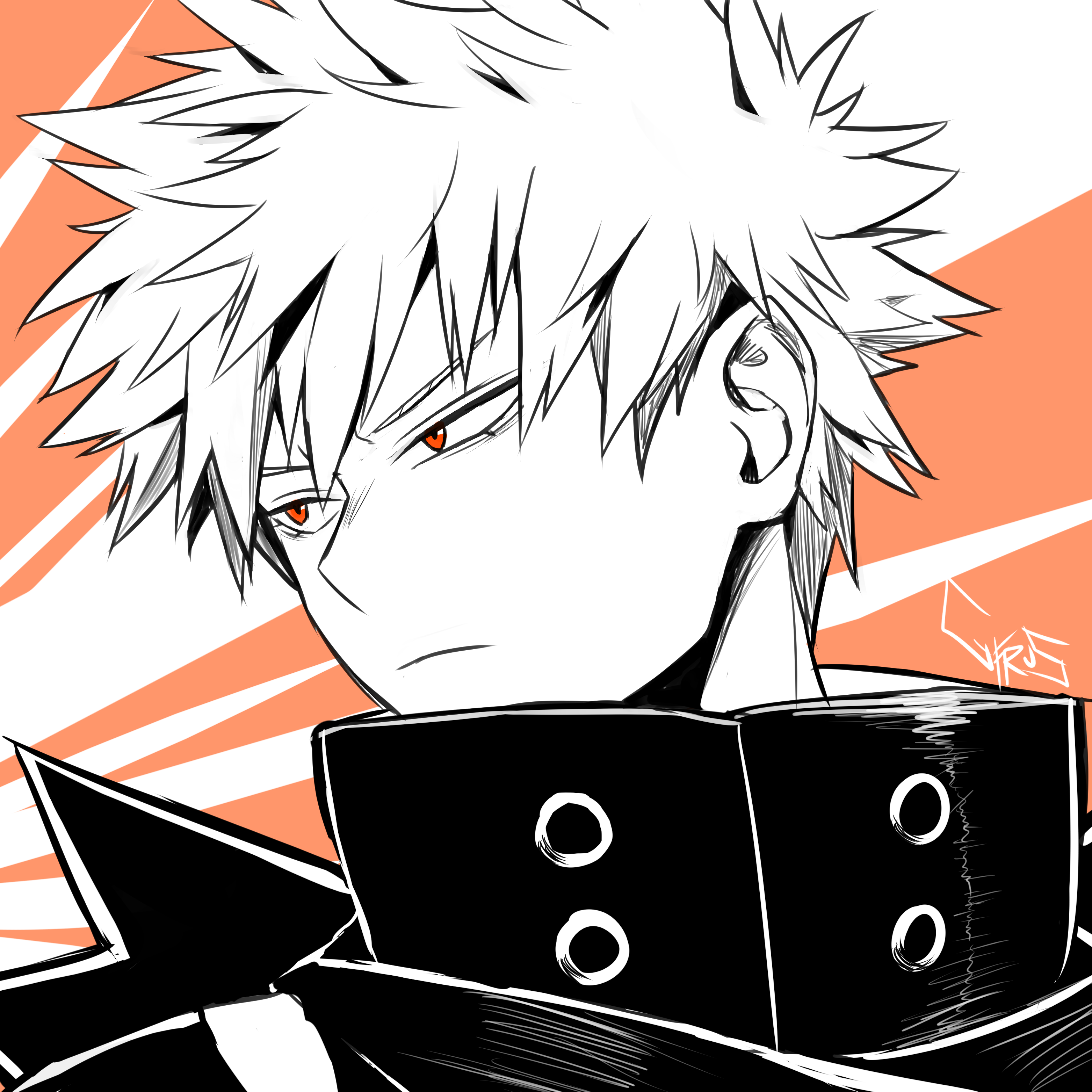 1boy absurdres bakugou_katsuki boku_no_hero_academia closed_mouth commentary cyfrus english_commentary frown hair_between_eyes highres looking_to_the_side male_focus popped_collar portrait red_eyes short_hair sideburns solo spiked_hair superhero_costume