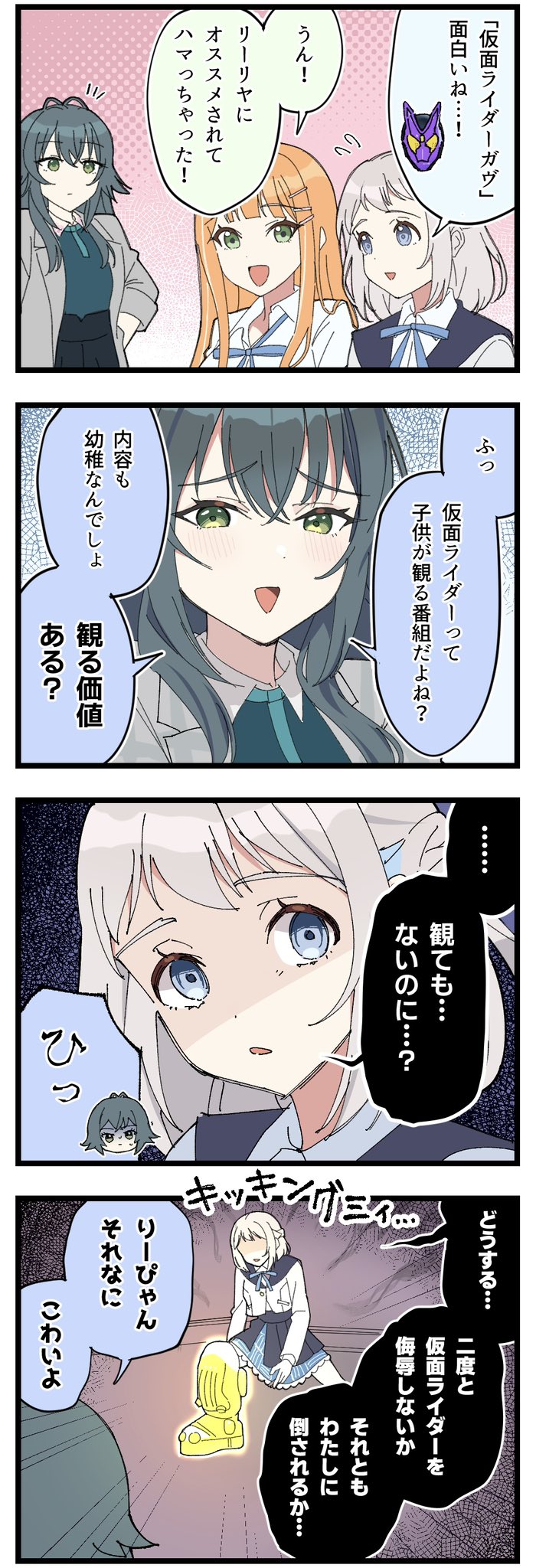 &{ID:11543734 CreatedAt:Sun Mar 02 19:30:07 -0600 2025 Score:1 Width:700 Height:2048 MD5:c1de54ddcb16c03ac2c9aaea6de900a3 Directory:c1/de Image:c1de54ddcb16c03ac2c9aaea6de900a3.jpg Rating:general Source:https://twitter.com/etetacunk/status/1896146013200744507 Change:1773619280 Owner:danbooru CreatorID:6498 ParentID:0 Sample:0 PreviewHeight:350 PreviewWidth:119 Tags:3girls :d :| antenna_hair black_hair blue_eyes blue_ribbon blue_skirt closed_mouth collared_shirt colored_speech_bubble commentary_request digging_your_own_grave dress_shirt emphasis_lines flying_sweatdrops gakuen_idolmaster green_eyes grey_hair gyaru half-closed_eyes hatsuboshi_gakuen_school_uniform highres idolmaster jacket kamen_rider kamen_rider_gavv kamen_rider_gavv_(series) katsuragi_lilja long_hair long_sleeves loose_neck_ribbon maritani_(etetacunk) medium_hair miniskirt multiple_girls neck_ribbon notice_lines open_collar open_mouth orange_hair overskirt parted_lips pleated_skirt powering_up ribbon school_uniform shaded_face shirt shiun_sumika sidelocks skirt smile speech_bubble straight_hair translation_request tsukimura_temari white_jacket white_shirt Title: HasNotes:false HasComments:false FileURL:https://img2.gelbooru.com/images/c1/de/c1de54ddcb16c03ac2c9aaea6de900a3.jpg PreviewURL:https://gelbooru.com/thumbnails/c1/de/thumbnail_c1de54ddcb16c03ac2c9aaea6de900a3.jpg SampleURL: SampleHeight:0 SampleWidth:0 Status:active PostLocked:0 HasChildren:false IsVideo:false DisplayDate:02.03.2025 19:30}