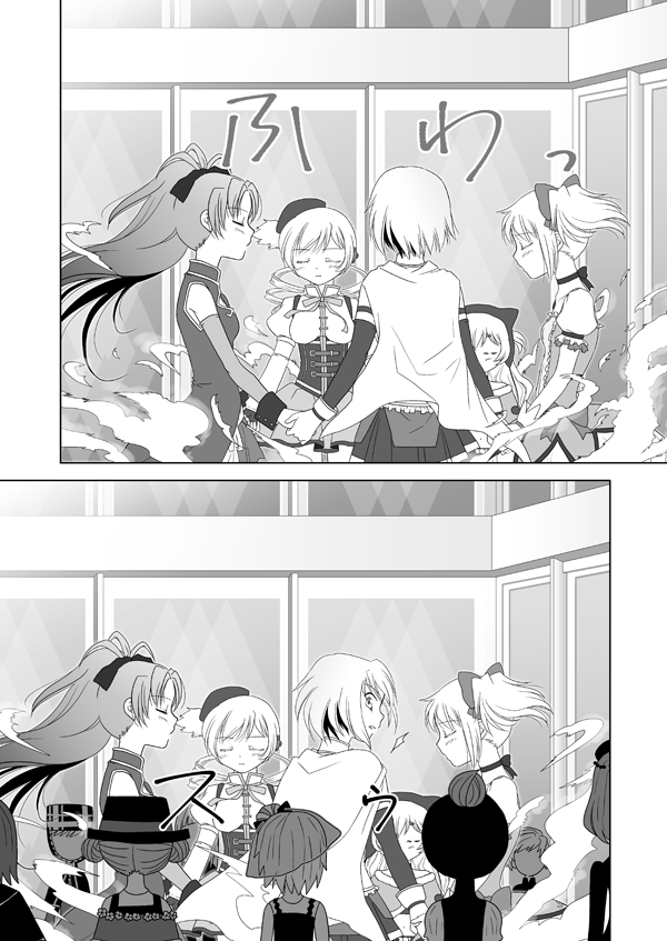 6+girls ^^^ animal_ear_headwear animal_ears armor bare_shoulders beanie beret bow bow_choker bowtie buttons capelet cat_ears center_frills chest_jewel child choker clara_dolls_(madoka_magica) cleavage_cutout closed_eyes closed_mouth clothing_cutout collared_cape collared_dress collared_shirt corset detached_sleeves dot_nose dou dress drill_hair earflap_beanie expressionless fake_animal_ears familiar_(madoka_magica) fingerless_gloves floating_cape floating_clothes floating_hair flower_hairpin frilled_shirt frilled_sleeves frills from_behind from_side fur-trimmed_capelet fur_trim gloves greyscale hair_bow hair_through_headwear hat hat_feather height_difference high_collar holding_hands indoors japanese_armor kaname_madoka kaname_madoka_(magical_girl) kinoji light_blush long_hair long_sleeves looking_at_another looking_back magical_girl mahou_shoujo_madoka_magica mahou_shoujo_madoka_magica:_hangyaku_no_monogatari miki_sayaka miki_sayaka_(magical_girl) miniskirt momoe_nagisa momoe_nagisa_(magical_girl) monochrome multiple_girls multiple_views open_mouth pleated_skirt pom_pom_(clothes) ponytail puffy_long_sleeves puffy_short_sleeves puffy_sleeves sakura_kyoko sakura_kyoko_(magical_girl) see-through_clothes see-through_veil shirt short_dress short_hair short_sleeves short_twintails skirt skirt_under_dress sleeveless sleeveless_dress sleeveless_shirt smoke square_neckline surprised tomoe_mami tomoe_mami_(magical_girl) twin_drills twintails two_side_up veil very_long_hair wavy_hair wide-eyed wrist_cuffs