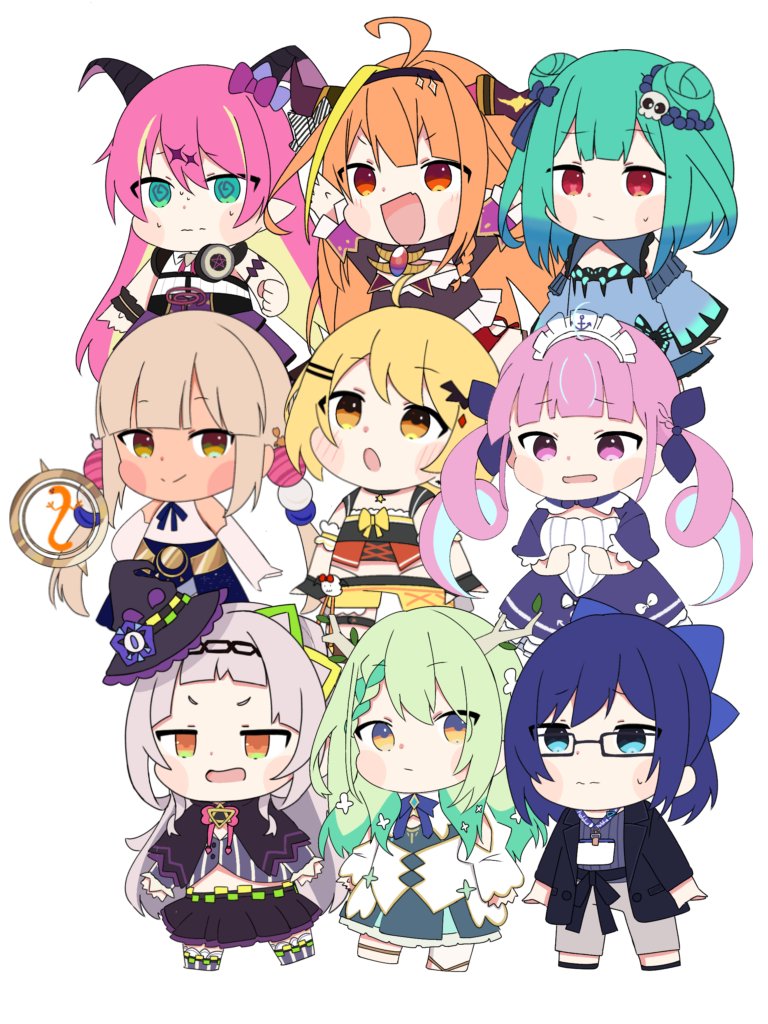6+girls :/ :o @_@ a-chan_(2nd_costume)_(hololive) a-chan_(hololive) ahoge anchor_print anchor_symbol animal_print anklet antlers arms_at_sides arms_up asymmetrical_horns barefoot bat_hair_ornament black_capelet black_hat black_jacket black_skirt black_socks blonde_hair blue_bow blue_bowtie blue_dress blue_eyes blue_hair blue_ribbon blue_sleeves blunt_bangs blush_stickers bow bowtie braid braided_bangs branch brown_eyes brown_hair butterfly_print capelet ceres_fauna ceres_fauna_(1st_costume) chain chain_hairband chibi chibi_only closed_mouth clothing_cutout colored_inner_hair commentary dark-skinned_female dark_skin demon_girl demon_horns detached_sleeves double_bun dragon_girl dragon_horns dress dress_bow drill_hair elbow_gloves flower giao2_ng glasses gloves gradient_hair green_eyes green_hair grey_hair hair_bow hair_bun hair_flower hair_ornament hairclip hashtag-only_commentary hat headphones headphones_around_neck hololive hololive_english horn_bow horn_ornament horns jacket jewelry kiryu_coco kiryu_coco_(1st_costume) limiter_(tsukumo_sana) long_hair long_sleeves looking_at_viewer looking_up maid_headdress mano_aloe minato_aqua minato_aqua_(1st_costume) multicolored_hair multiple_girls murasaki_shion murasaki_shion_(1st_costume) open_mouth orange_eyes orange_hair overskirt parted_lips pink_bow pink_hair pink_skirt planet_hair_ornament pleated_skirt pointy_ears purple_eyes red_eyes red_skirt ribbon running shirt short_eyebrows short_hair shorts side-by-side simple_background skirt skull_hair_ornament sleeveless sleeveless_shirt small_sweatdrop smile socks sparkle_hair_ornament split_mouth standing streaked_hair striped_clothes striped_shirt sweat trait_connection tsukumo_sana tsukumo_sana_(1st_costume) twin_drills twintails two-tone_hair uneven_horns uruha_rushia uruha_rushia_(1st_costume) v-shaped_eyebrows vertical-striped_clothes vertical-striped_shirt very_long_hair virtual_youtuber wavy_mouth white_background white_bow white_flower white_gloves white_shirt white_skirt witch_hat yatagarasu_(tsukumo_sana) yellow_eyes yellow_shorts yozora_mel yozora_mel_(1st_costume)