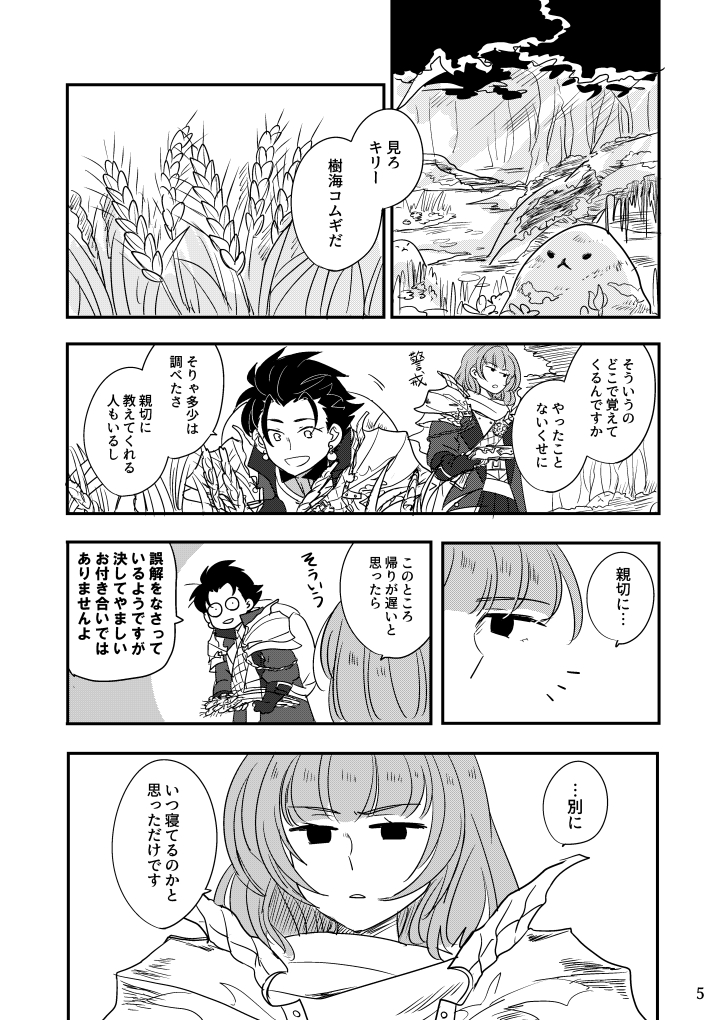1boy 1girl ahoge armor blank_eyes dragoon_(sekaiju) dragoon_4_(sekaiju) etrian_odyssey fencer_(sekaiju) fencer_1_(sekaiju) forest greyscale gun holding holding_gun holding_weapon kokecoo monochrome nature sekaiju_no_meikyuu sekaiju_no_meikyuu_5 short_hair smile statue weapon wheat wide-eyed