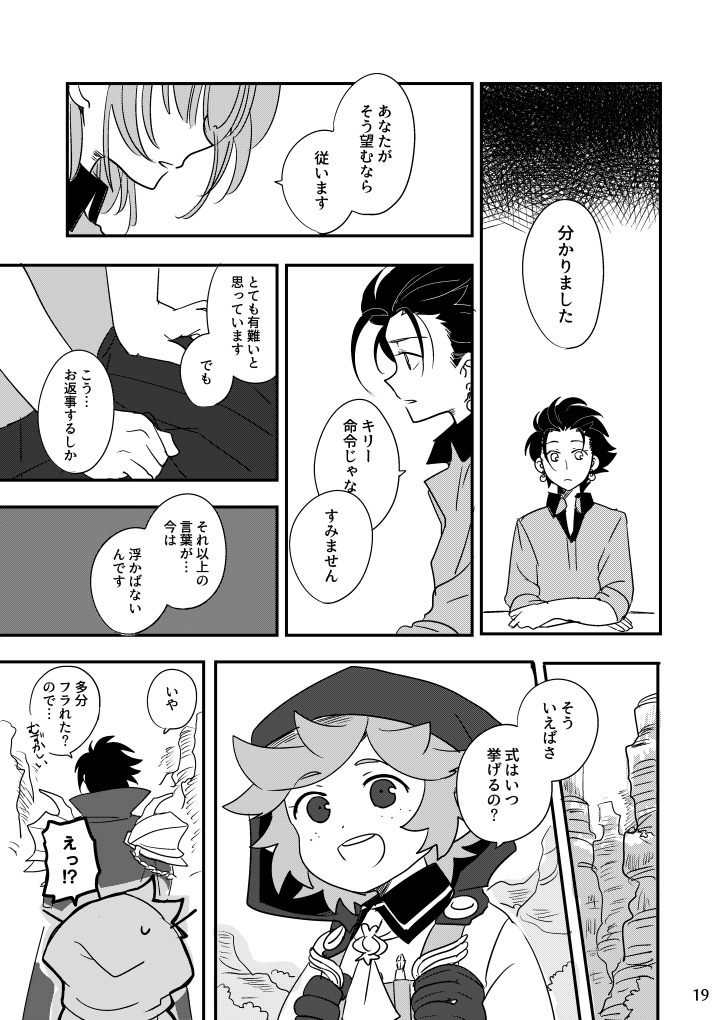 1girl 2boys ahoge alternate_costume armor dragoon_(sekaiju) dragoon_4_(sekaiju) earrings etrian_odyssey fencer_(sekaiju) fencer_1_(sekaiju) greyscale herbalist_(sekaiju) herbalist_3_(sekaiju) hood jewelry kokecoo messy_hair monochrome multiple_boys open_mouth sekaiju_no_meikyuu sekaiju_no_meikyuu_5 short_hair smile