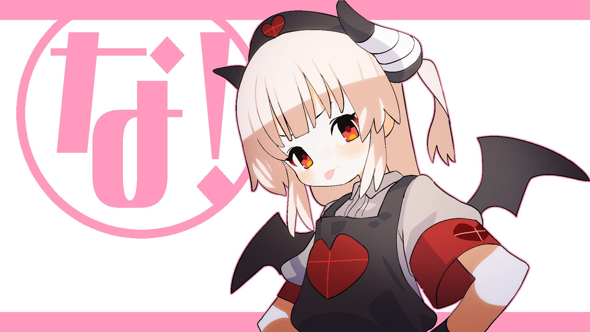 1girl :p apron bandaged_horn black_apron black_hat blonde_hair commentary demon_horns demon_wings hat heart highres horns long_hair looking_at_viewer natori_sana natori_sana_(devil_natori) nurse_cap official_alternate_costume red_eyes sana_channel shinbashi_seiji solo untranslatable_commentary tongue tongue_out upper_body virtual_youtuber wings