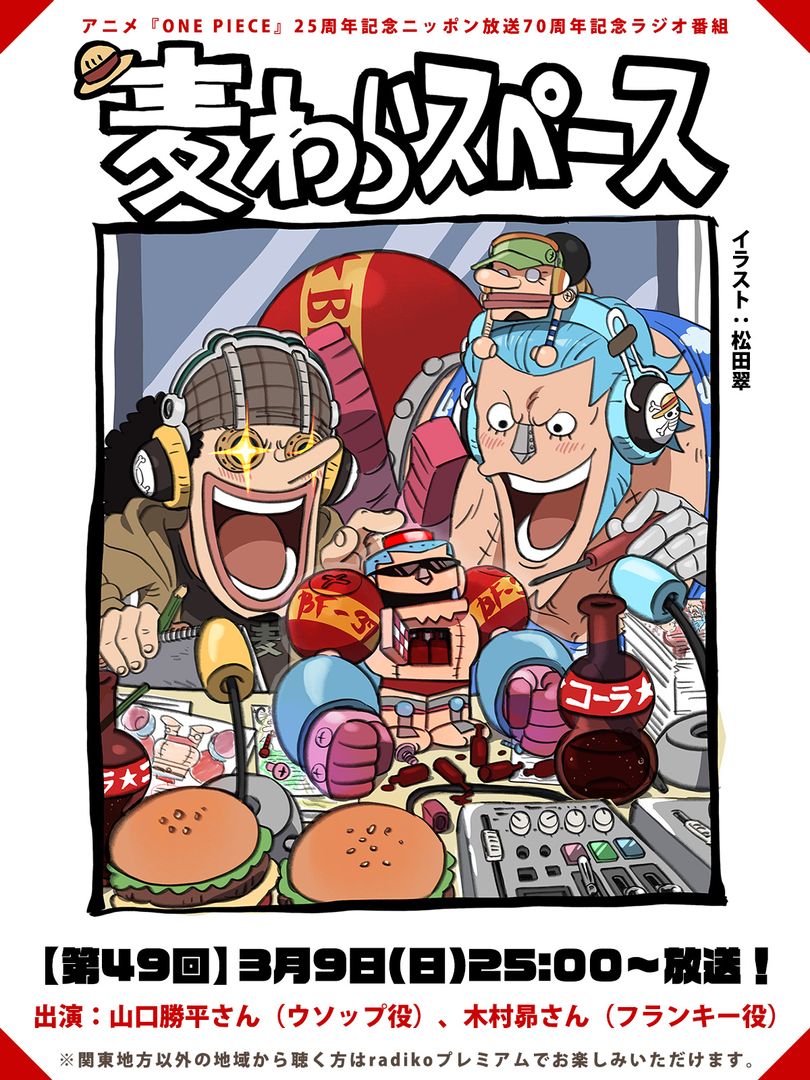 2boys black_hair blue_hair blush bottle burger commentary_request food franky_(one_piece) hair_slicked_back headphones holding long_nose lower_eyelashes_only male_focus matsuda_midori microphone multiple_boys official_art one_piece one_piece_straw_hat_space open_mouth short_hair soda_bottle star-shaped_pupils star_(symbol) symbol-shaped_pupils usopp very_short_hair