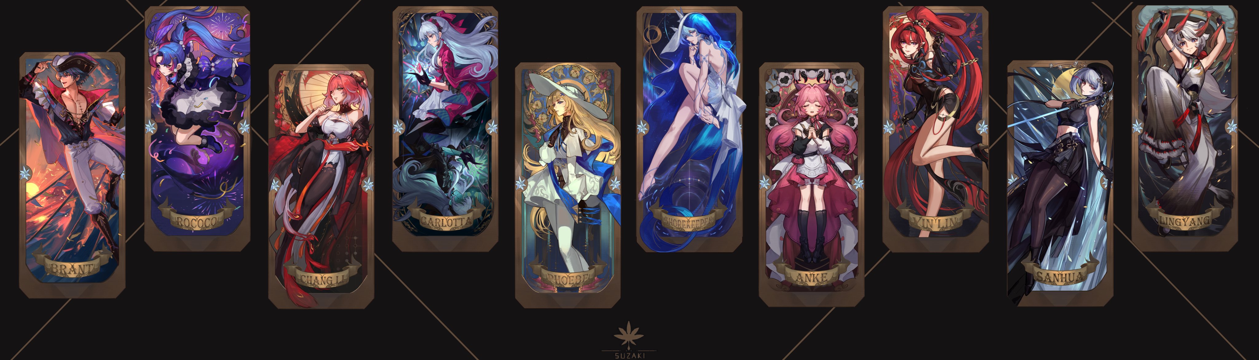 2boys 6+girls absurdly_long_hair absurdres aerial_fireworks animal_ears aqua_eyes armlet arms_up artist_logo artist_name asymmetrical_sleeves bare_legs bare_shoulders beret black_bodysuit black_boots black_collar black_eyes black_gloves black_hairband black_hat black_headband black_jacket black_pantyhose black_shirt black_shoes black_skirt black_sleeves black_thighhighs blonde_hair blue_hair blue_nails blue_shirt blue_veil bodysuit boots bow brant_(wuthering_waves) breasts card_(medium) carlotta_(wuthering_waves) changli_(wuthering_waves) character_name chinese_clothes circle_facial_mark closed_eyes closed_mouth collar collarbone colored_extremities colored_eyelashes commentary crop_top crystal detached_sleeves dress earrings elbow_gloves encore_(wuthering_waves) english_commentary eye_mask eye_trail facial_mark feather_hair feet fireworks foot_up from_side full_body fur-trimmed_dress fur_trim gloves grey_hair hair_bow hair_ornament hair_stick hairband hand_up hat headband heel-less_heels heterochromia high-low_skirt high_heels high_ponytail highres holding holding_sword holding_weapon jacket jewelry knee_boots large_breasts leg_up legs light_trail lingyang_(wuthering_waves) logo long_hair long_sleeves looking_ahead looking_at_viewer looking_down male_focus mark_under_both_eyes mask mask_on_head medium_breasts midair midriff mole mole_under_mouth multicolored_hair multiple_boys multiple_girls nail_polish navel open_clothes open_shirt orange_eyes own_hands_clasped own_hands_together pants pantyhose parted_lips phoebe_(wuthering_waves) pink_bow pink_eyes pink_hair pink_hairband pink_jacket pink_skirt pointy_ears ponytail purple_eyes red_eyes red_hair red_hands roccia_(wuthering_waves) sandals sanhua_(wuthering_waves) shirt shoes shorekeeper_(wuthering_waves) short_hair skirt sleeveless sleeveless_dress small_breasts smile steve_zheng sword tacet_mark_(wuthering_waves) thighhighs toes toned toned_male tricorne twintails two-tone_hair two-tone_veil veil very_long_hair weapon white_dress white_hair white_hat white_pants white_pantyhose white_shirt white_veil wolf_boy wolf_ears wuthering_waves x_hair_ornament yellow_eyes yinlin_(wuthering_waves)