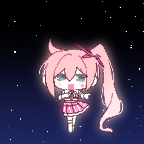 1girl aqua_eyes chibi commentary facial_mark floating hair_between_eyes hair_ornament long_hair looking_at_viewer lowres ojingeo11110 open_mouth pink_hair pink_skirt pleated_skirt side_ponytail skirt solo star_(symbol) star_facial_mark star_hair_ornament synthesizer_v uni_(synthesizer_v) uni_(vocaloid) very_long_hair vocaloid
