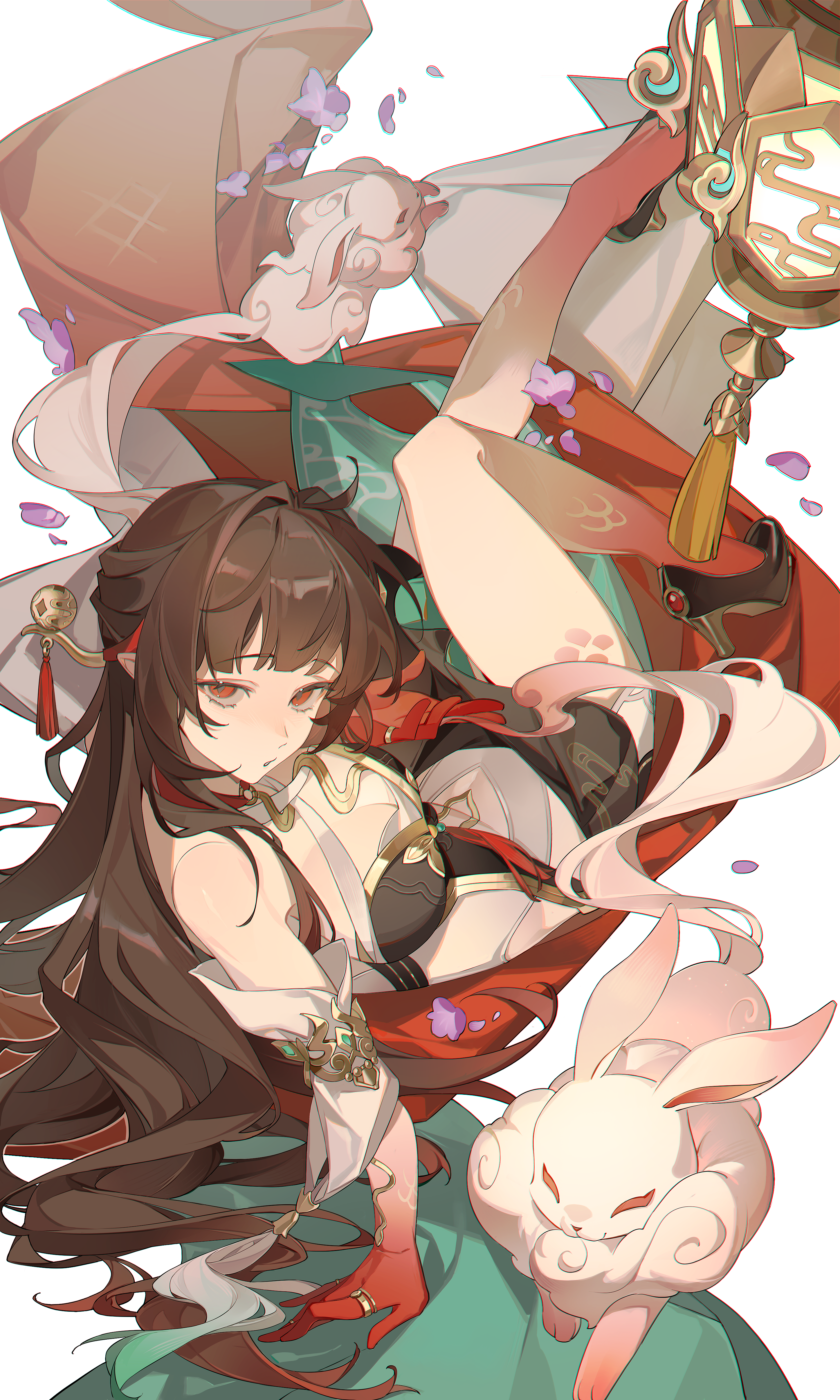 1girl absurdres brown_hair chinese_commentary colored_extremities commentary_request diamond-shaped_pupils diamond_(shape) from_above fuyuan_(honkai:_star_rail) hair_ornament highres honkai:_star_rail honkai_(series) jewelry lantern lingsha_(honkai:_star_rail) long_hair looking_at_viewer parted_lips passerb37118098 pointy_ears red_eyes red_feet red_hands ring sitting solo symbol-shaped_pupils tassel tassel_hair_ornament very_long_hair
