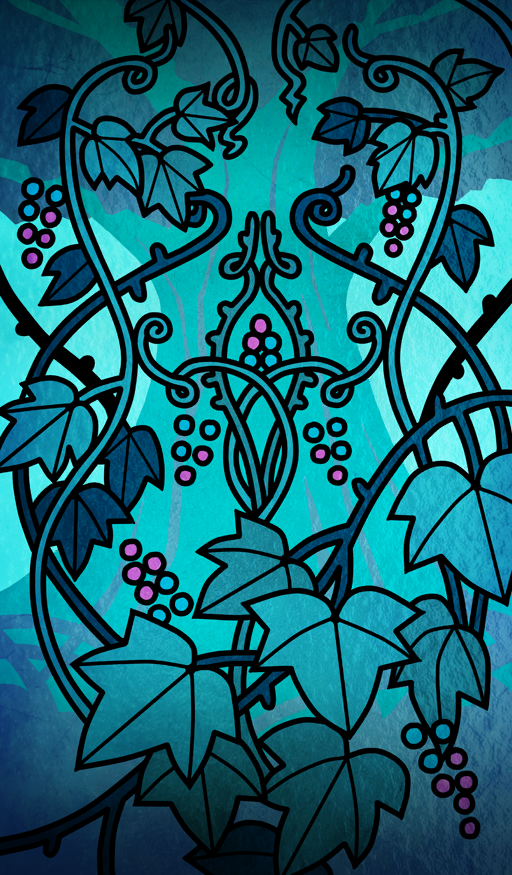 aqua_background aqua_theme black_outline commentary fate/grand_order fate_(series) food fruit grapes kirusu leaf nature no_humans official_art outline plant still_life third-party_source tree vignetting vines