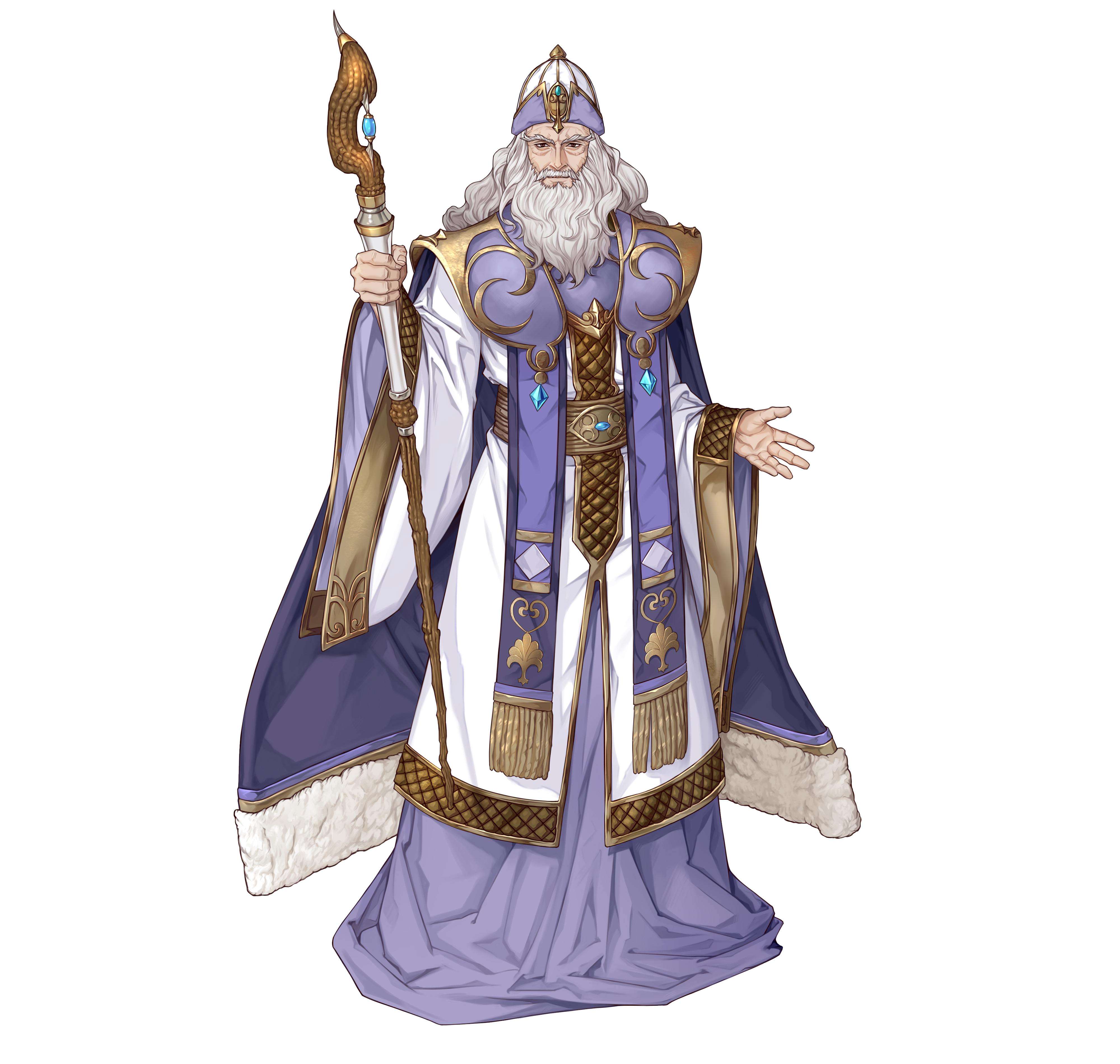 1boy absurdres beard commentary_request facial_hair fire_emblem fire_emblem_echoes:_shadows_of_valentia fire_emblem_heroes full_beard full_body highres holding holding_staff long_hair looking_at_viewer male_focus meisai mustache nintendo nomah_(fire_emblem) official_art old old_man priest robe simple_background solo staff standing white_background white_beard white_hair wrinkled_skin