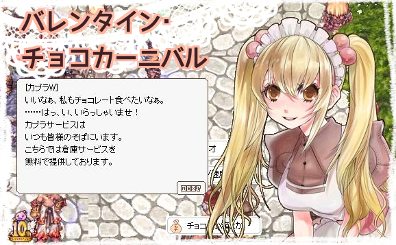 1girl apron blonde_hair breasts brown_dress brown_eyes curly_sue dress game_screenshot_background hair_bobbles hair_ornament kafra_uniform lala_(sputnik) leaning_forward long_hair looking_at_viewer maid maid_headdress medium_breasts open_mouth puffy_short_sleeves puffy_sleeves ragnarok_online screenshot_background short_sleeves smile solo translation_request twintails upper_body white_apron