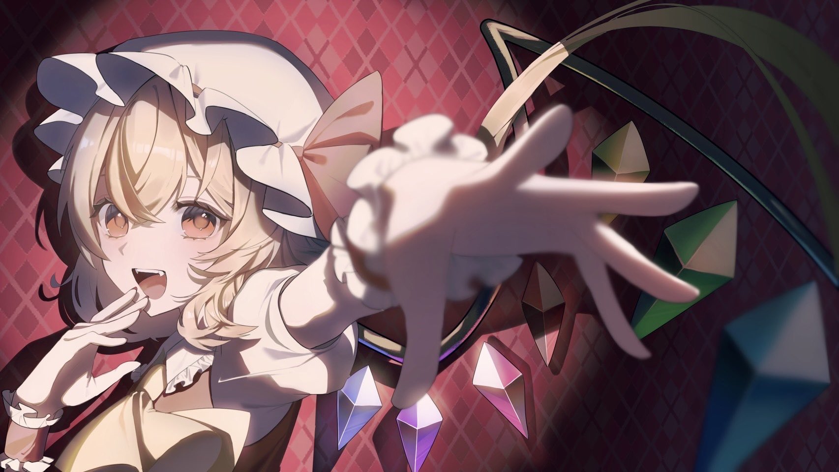 &{ID:11637374 CreatedAt:Thu Mar 20 17:30:52 -0500 2025 Score:2 Width:1706 Height:960 MD5:d0fd0373f658b26ed319d9efaa6391a9 Directory:d0/fd Image:d0fd0373f658b26ed319d9efaa6391a9.jpg Rating:general Source:https://twitter.com/_Ko_gyoku/status/1902281004632481865 Change:1742509853 Owner:danbooru CreatorID:6498 ParentID:0 Sample:1 PreviewHeight:196 PreviewWidth:350 Tags:1girl argyle_background ascot blonde_hair blurry blurry_foreground bow collared_shirt commentary crossed_bangs crystal crystal_wings flandre_scarlet foreshortening frilled_cuffs frilled_shirt_collar frills hands_up hat hat_bow highres ko_gyoku light_blush looking_at_viewer mob_cap nail_polish open_mouth outstretched_arm puffy_short_sleeves puffy_sleeves red_bow red_eyes shadow shirt short_sleeves smile solo touhou upper_body vest white_hat white_shirt wings yellow_ascot Title: HasNotes:false HasComments:false FileURL:https://img2.gelbooru.com/images/d0/fd/d0fd0373f658b26ed319d9efaa6391a9.jpg PreviewURL:https://gelbooru.com/thumbnails/d0/fd/thumbnail_d0fd0373f658b26ed319d9efaa6391a9.jpg SampleURL:https://img2.gelbooru.com/samples/d0/fd/sample_d0fd0373f658b26ed319d9efaa6391a9.jpg SampleHeight:478 SampleWidth:850 Status:active PostLocked:0 HasChildren:false IsVideo:false DisplayDate:20.03.2025 17:30}