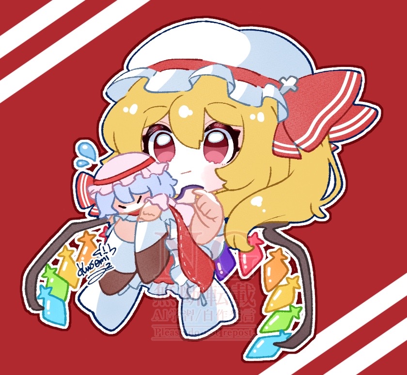 &{ID:11655658 CreatedAt:Mon Mar 24 04:45:52 -0500 2025 Score:0 Width:840 Height:773 MD5:00b86bb71233ff75c02f71109f97859c Directory:00/b8 Image:00b86bb71233ff75c02f71109f97859c.jpg Rating:general Source:https://www.pixiv.net/artworks/128451780 Change:1749627286 Owner:danbooru CreatorID:6498 ParentID:0 Sample:0 PreviewHeight:322 PreviewWidth:350 Tags:1girl ascot bat_wings blonde_hair blue_hair blush bow character_doll chibi crystal crystal_wings doll flandre_scarlet flying_sweatdrops hat hat_ribbon mob_cap puffy_short_sleeves puffy_sleeves red_background red_eyes remilia_scarlet ribbon short_hair short_sleeves side_ponytail simple_background skirt smile solo tkmt3690 touhou wings Title: HasNotes:false HasComments:false FileURL:https://img2.gelbooru.com/images/00/b8/00b86bb71233ff75c02f71109f97859c.jpg PreviewURL:https://gelbooru.com/thumbnails/00/b8/thumbnail_00b86bb71233ff75c02f71109f97859c.jpg SampleURL: SampleHeight:0 SampleWidth:0 Status:active PostLocked:0 HasChildren:false IsVideo:false DisplayDate:24.03.2025 04:45}